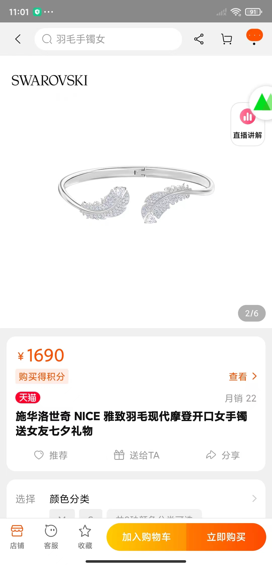 满钻羽毛开口手镯