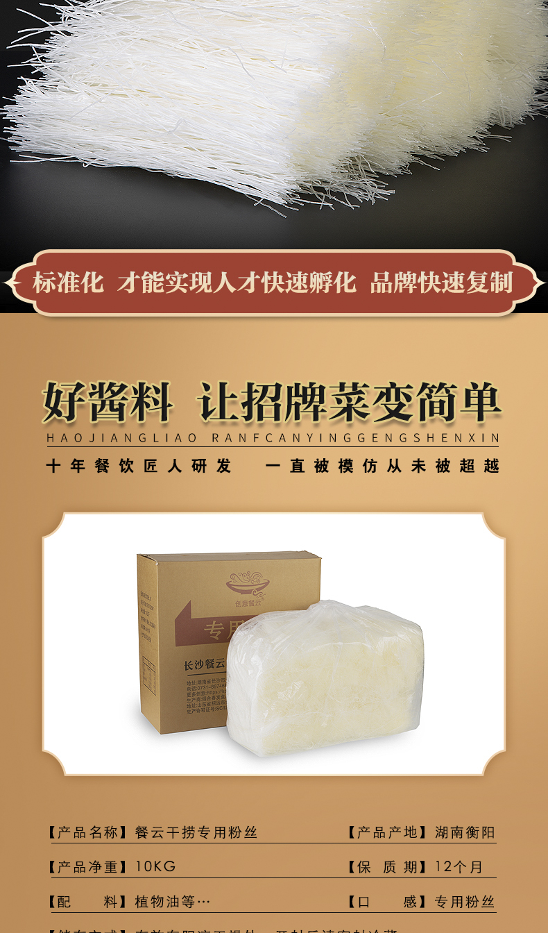 创意海皇粉丝酱+创意海皇干捞粉丝专用粉丝,我们用了十年时间做好酱和粉丝,就为今天的完美呈现,源于粤而光大于湘!