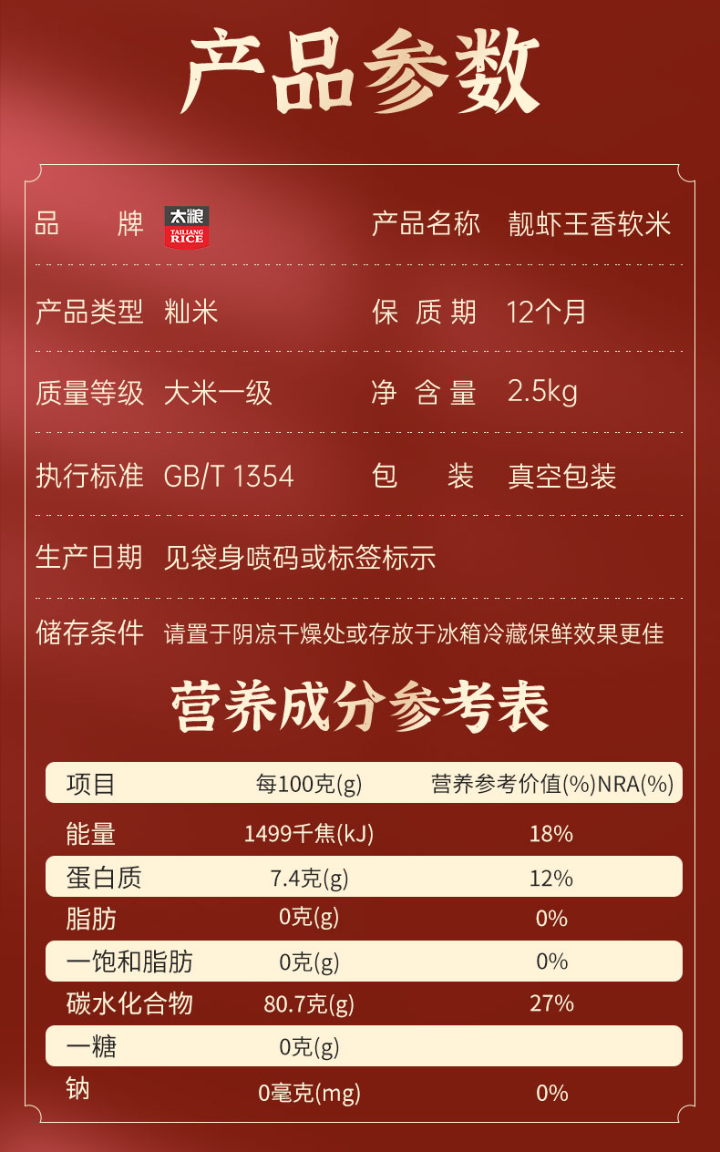 太粮靓虾王香软米2.5kg