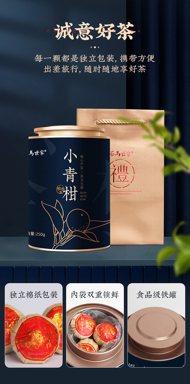 【金奖爆款】茶马世家新会小青柑陈皮普洱茶熟茶特级小柑橘小青桔柑普茶叶250g