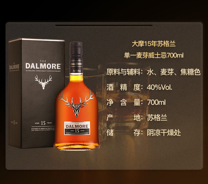【行货】英国苏格兰大摩/达摩15年单一麦芽威士忌 700ml*1瓶
