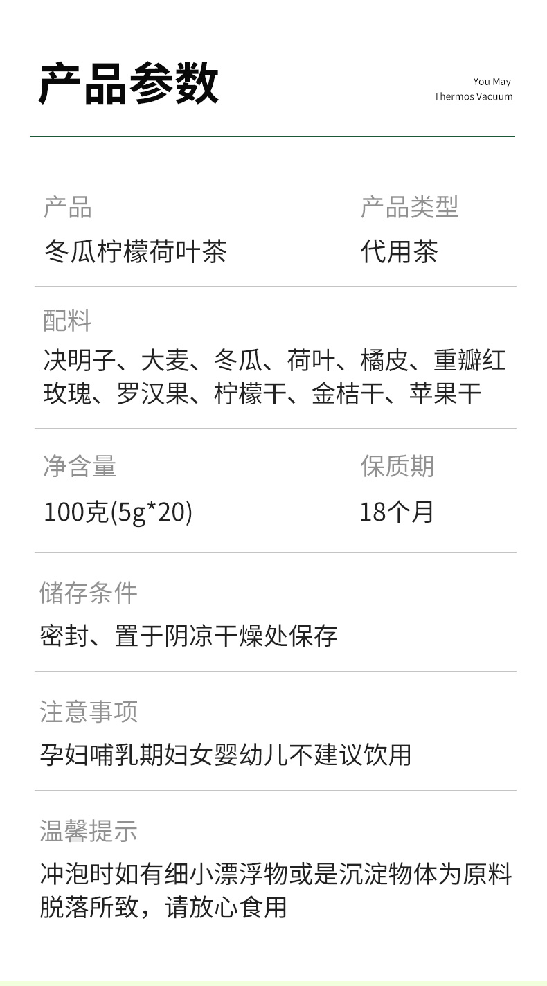 冬瓜柠檬荷叶茶天然草本养生茶饮 5g*20袋/盒
