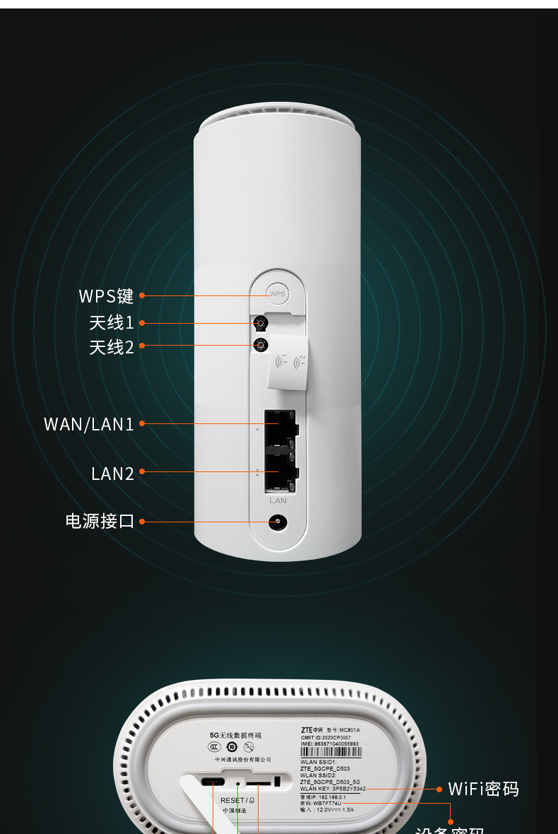 中兴5G CPE随身移动车载wifi6插卡上网神器家用无线宽带【全国联保】