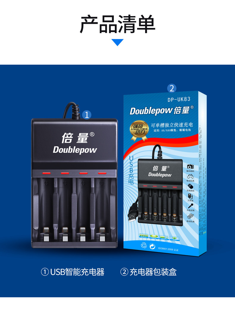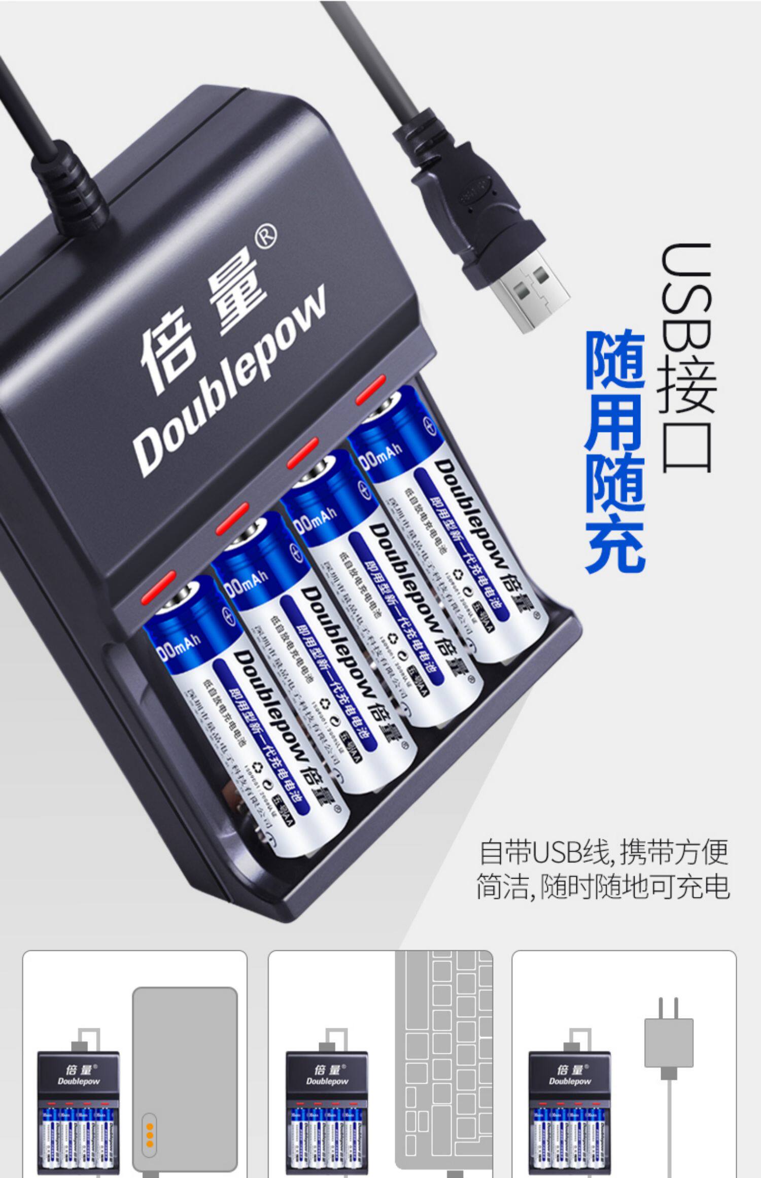南孚倍量5号充电电池多功能通用充电器+4粒南孚充电电池USB款 充满变灯