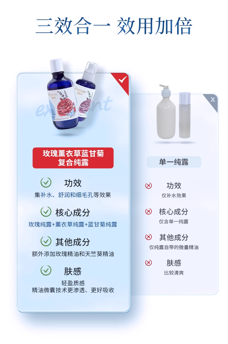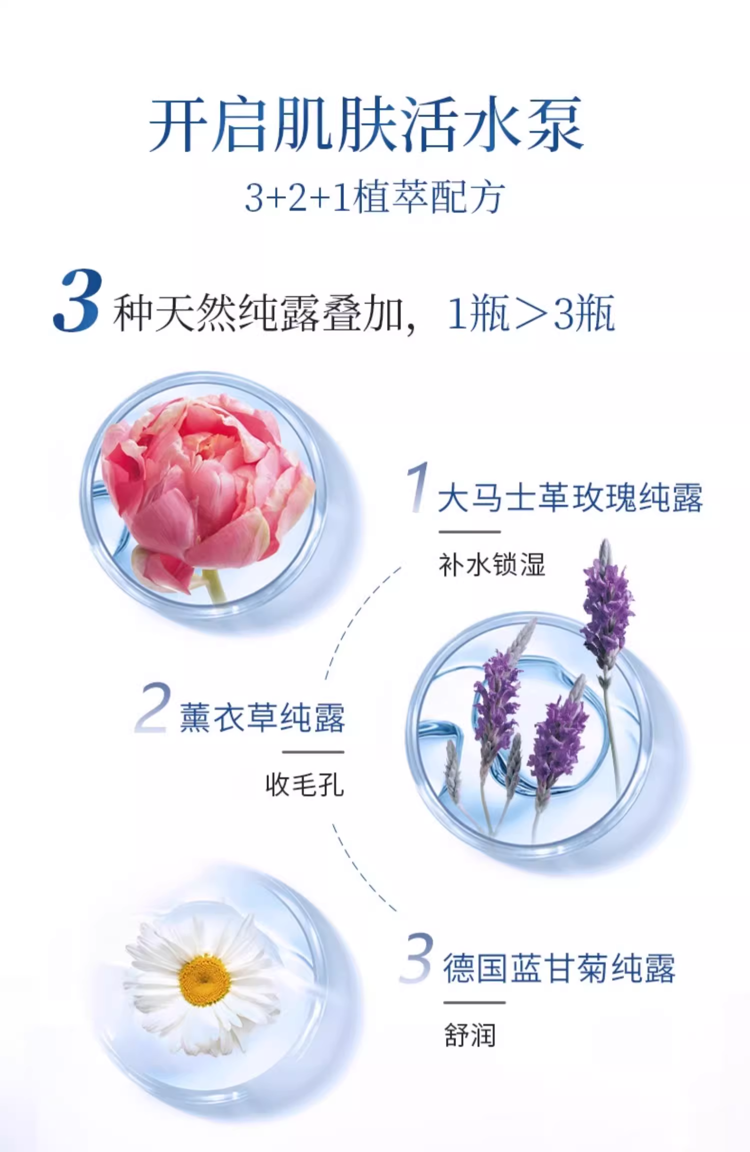 【社群福利】【新效期】嘉媚乐玫瑰薰衣草蓝甘菊复合纯露300ml*3瓶 收缩毛孔 补水保湿 爽肤玫瑰水