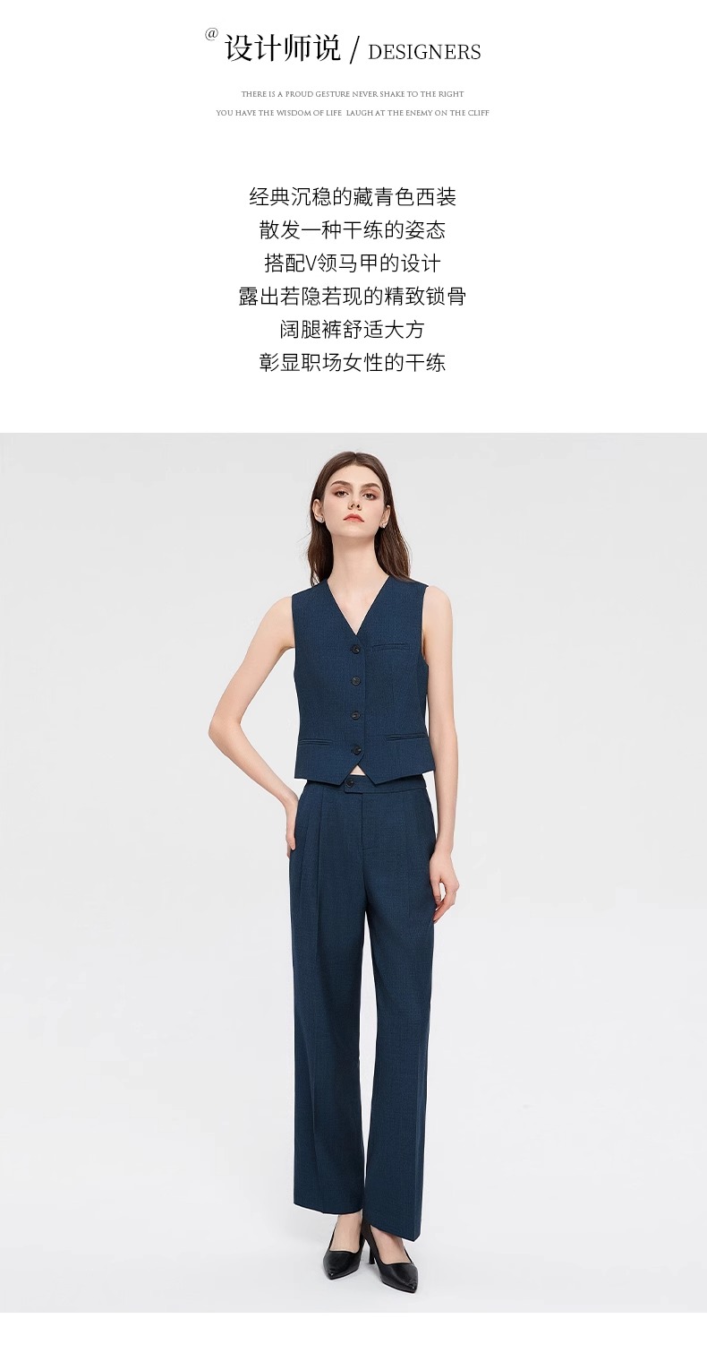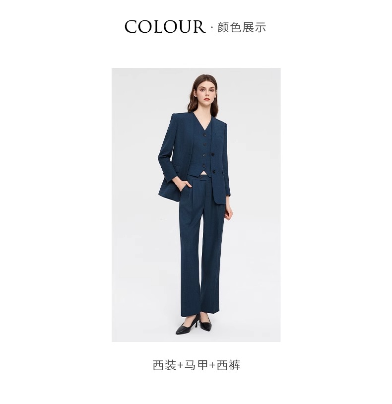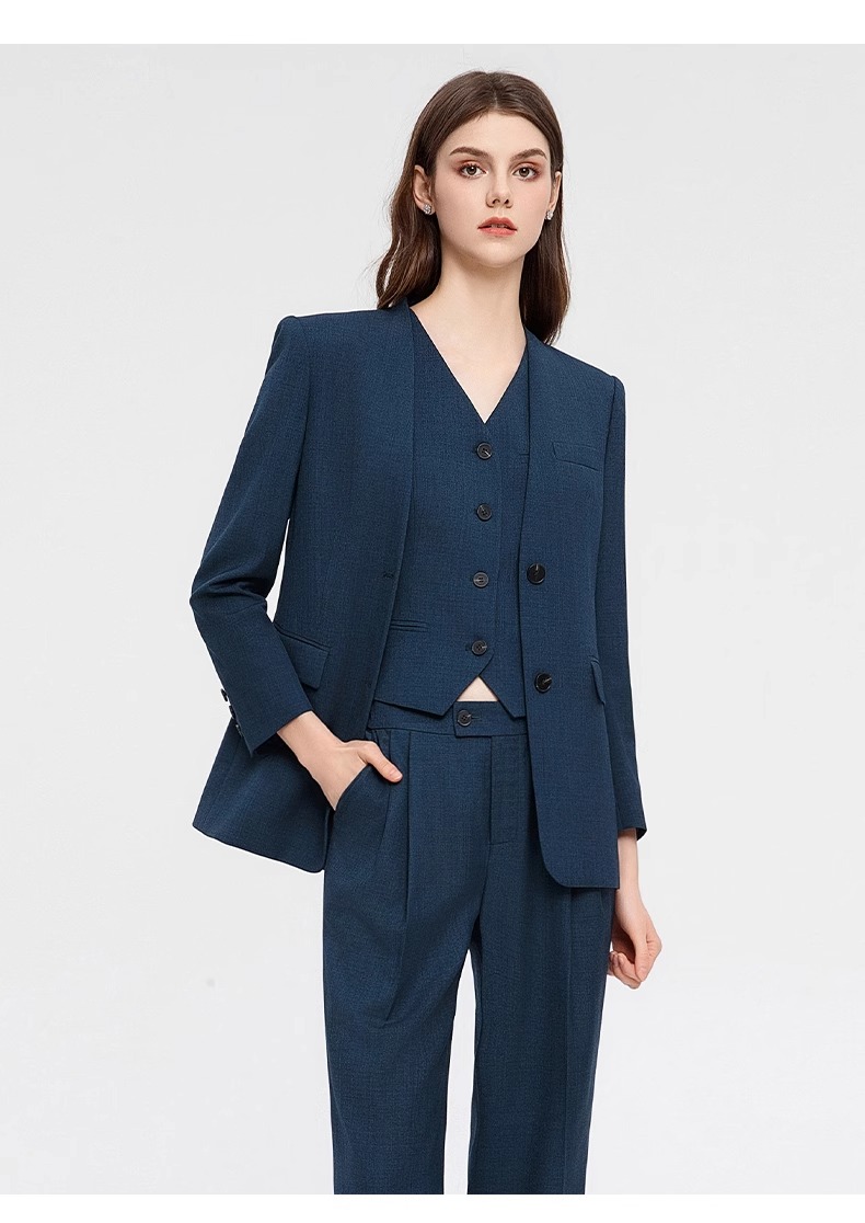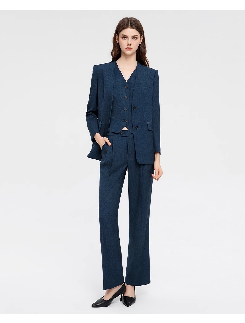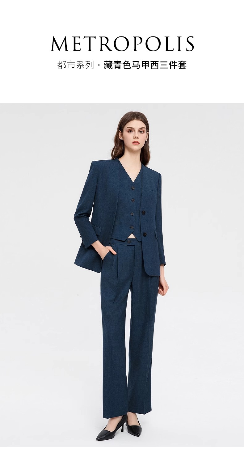 干练时尚藏青色西装马甲三件套韩版修身职业西装套裤