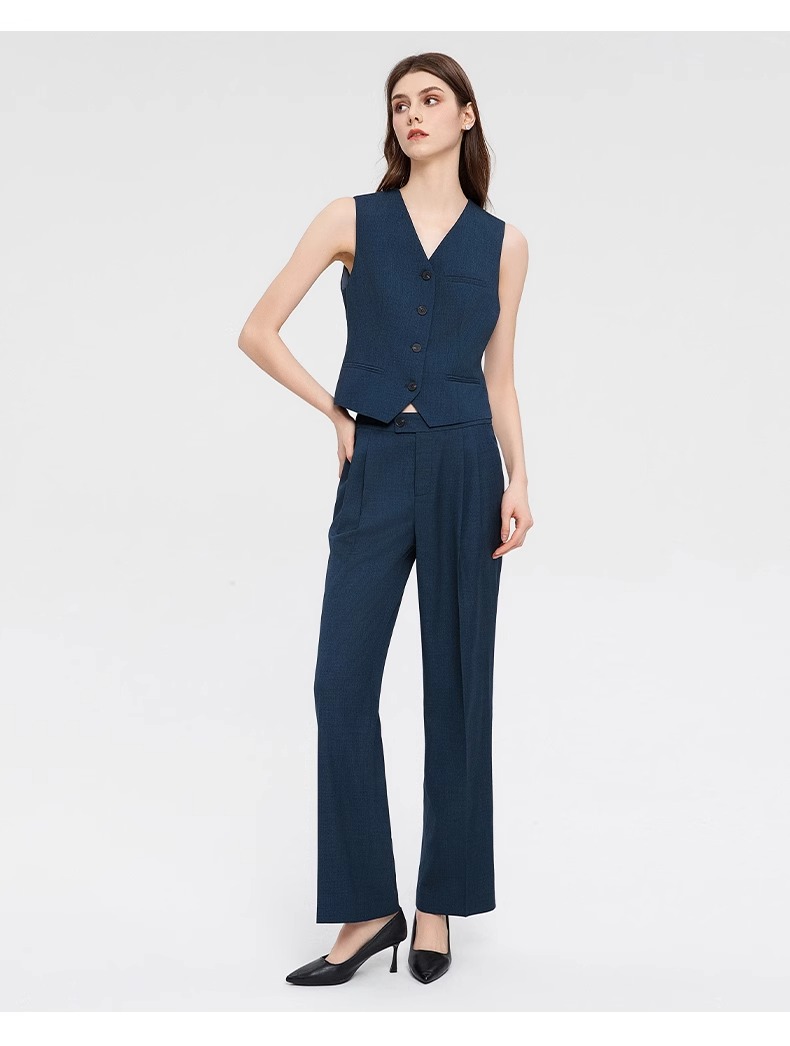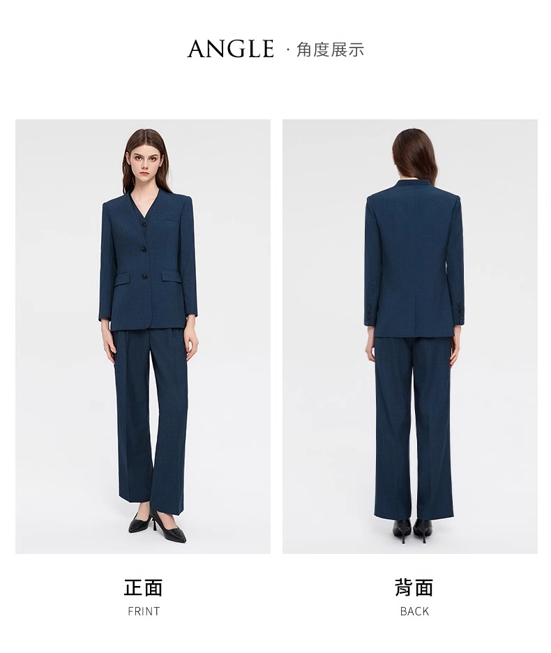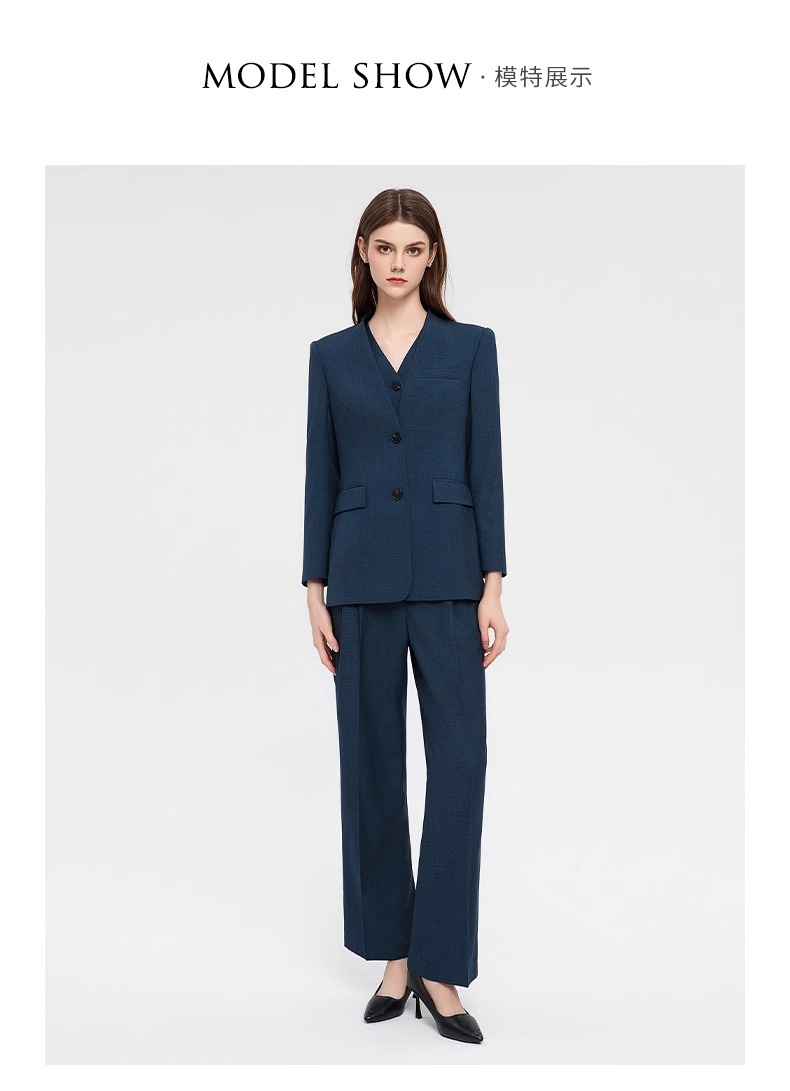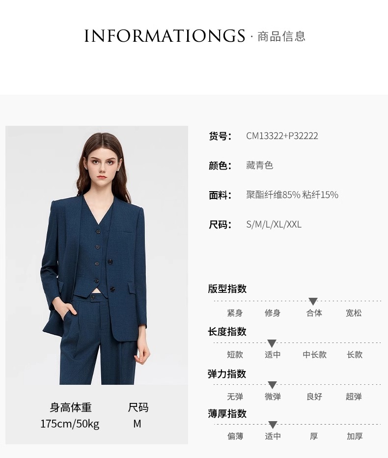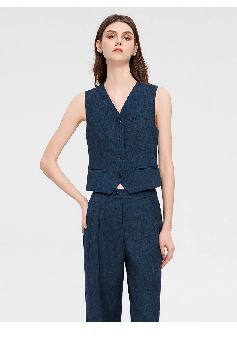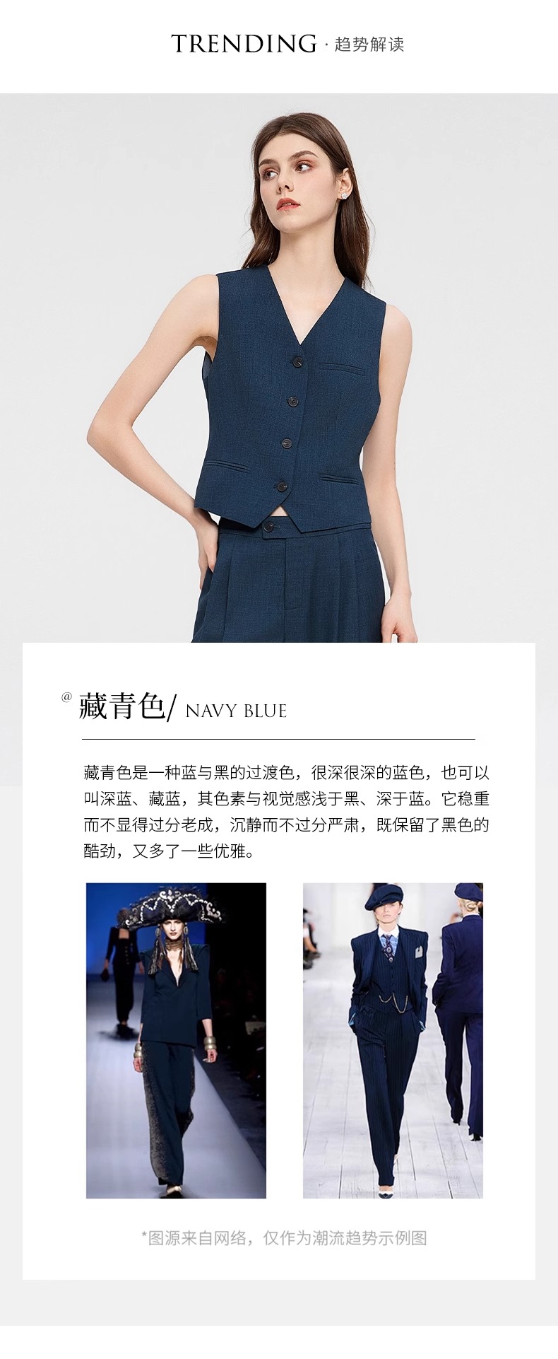 干练时尚藏青色西装马甲三件套韩版修身职业西装套裤