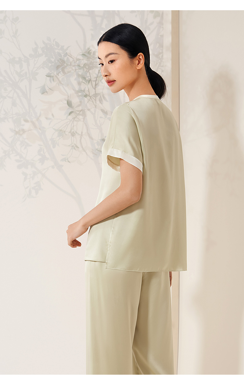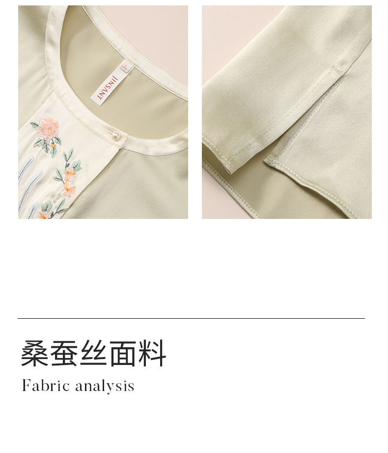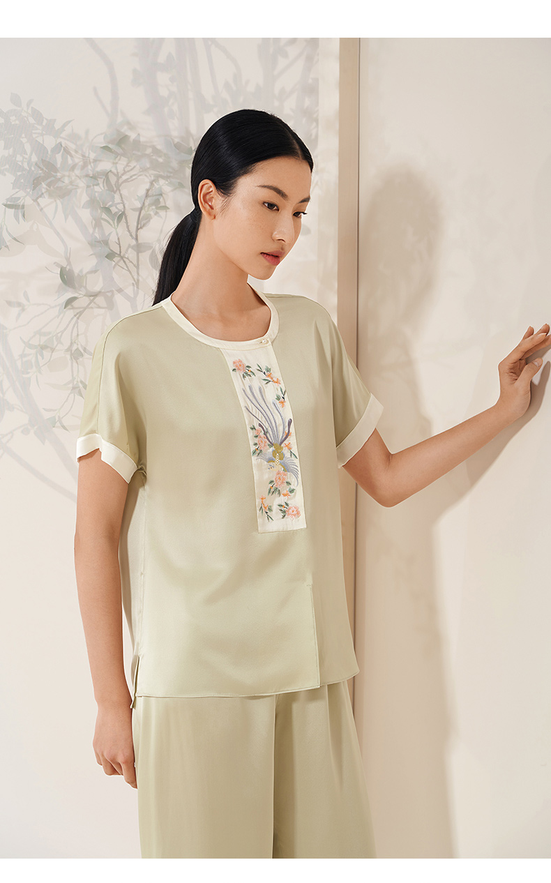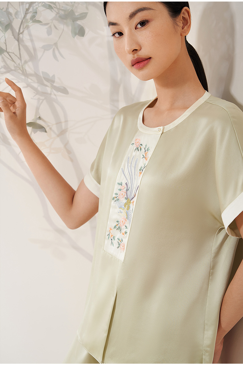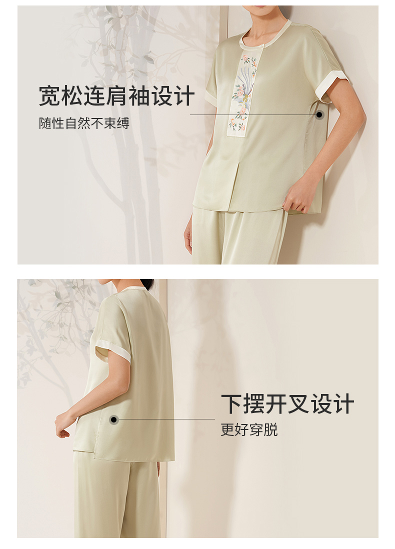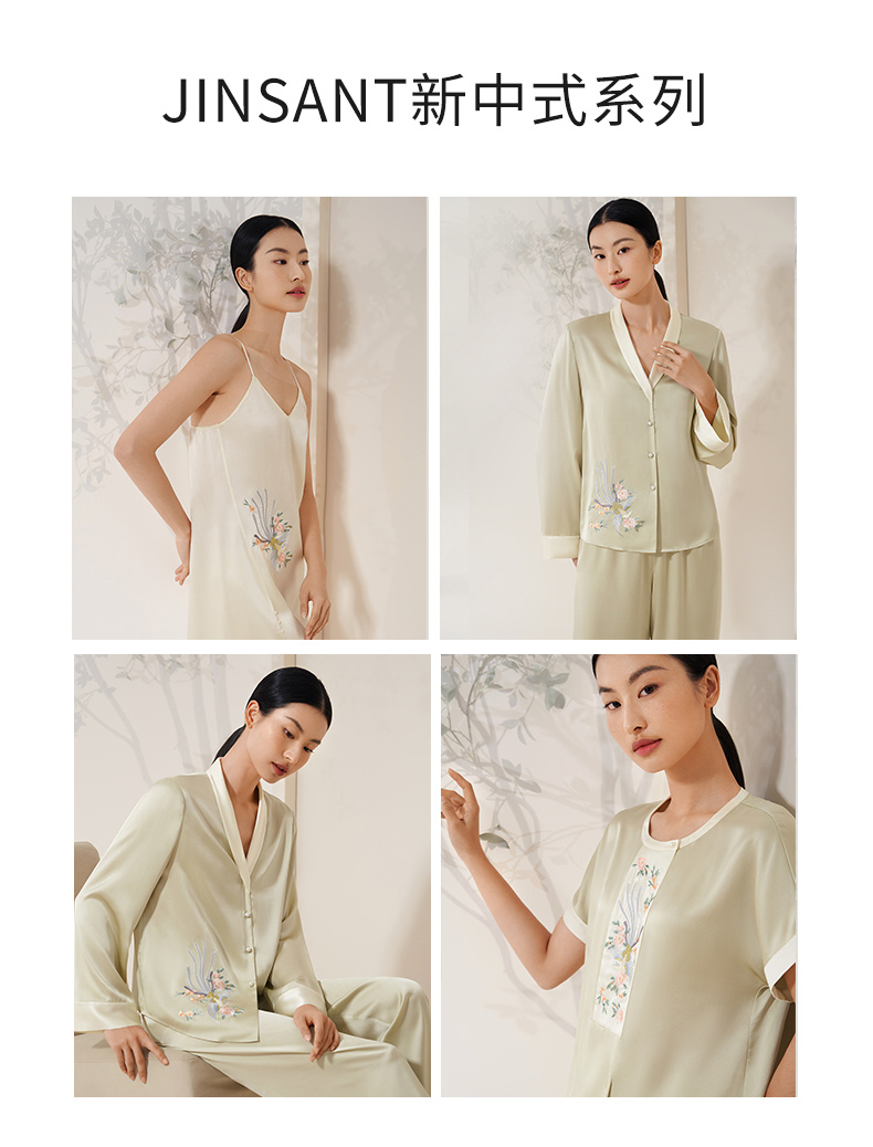 【凤穿牡丹】金三塔新中式刺绣重磅真丝睡衣女100%桑蚕丝宽松衣裤套 YSFEB402