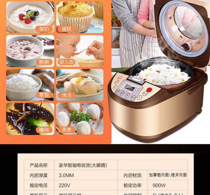 【双11特惠】多蒙家用智能电饭煲5L 900W多功能煮粥煲汤米饭电饭锅