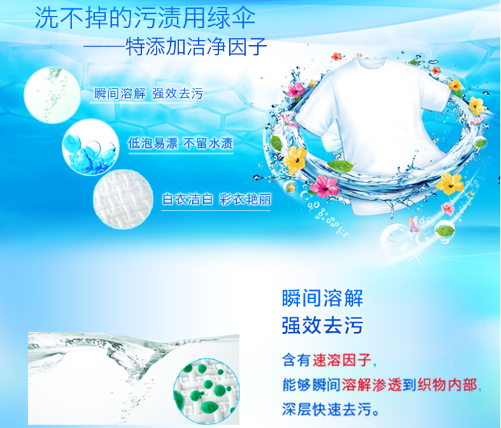 绿伞洗衣粉强效去污除菌除螨持久留香柔顺洁净