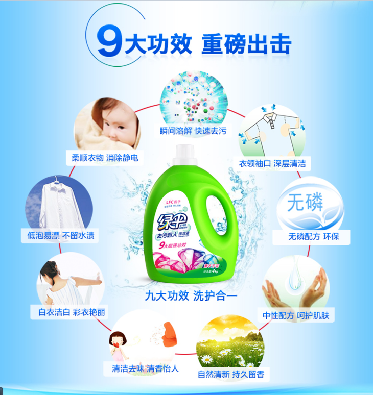 绿伞 去污超人洗衣液4kg瓶装