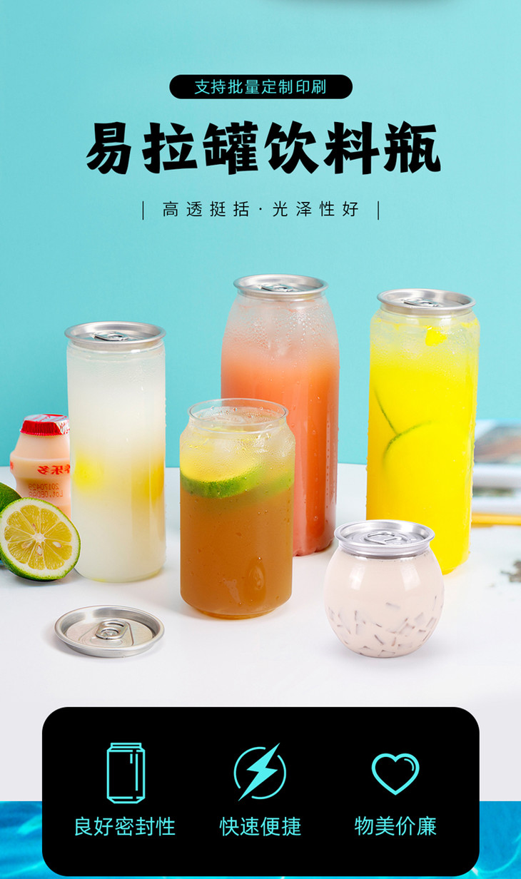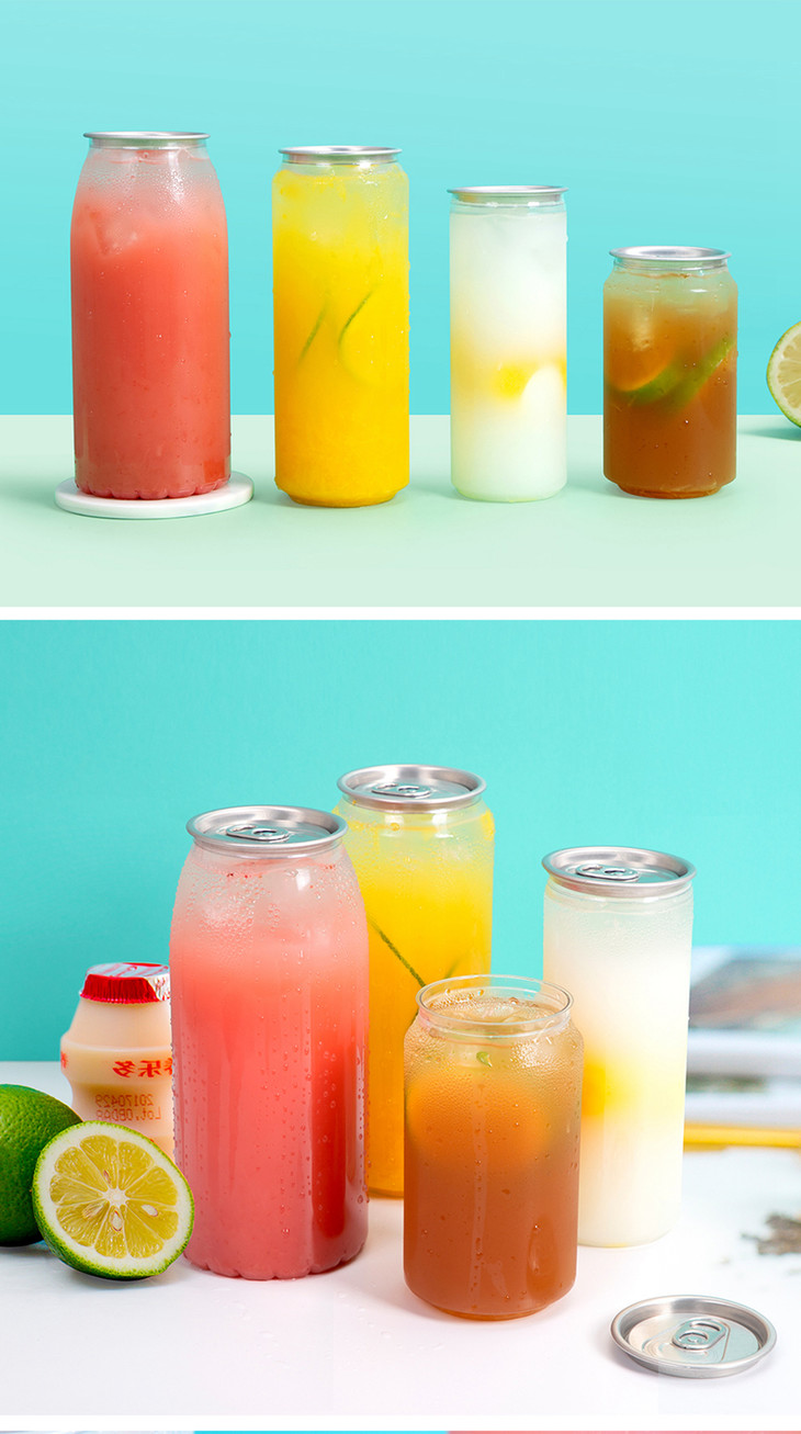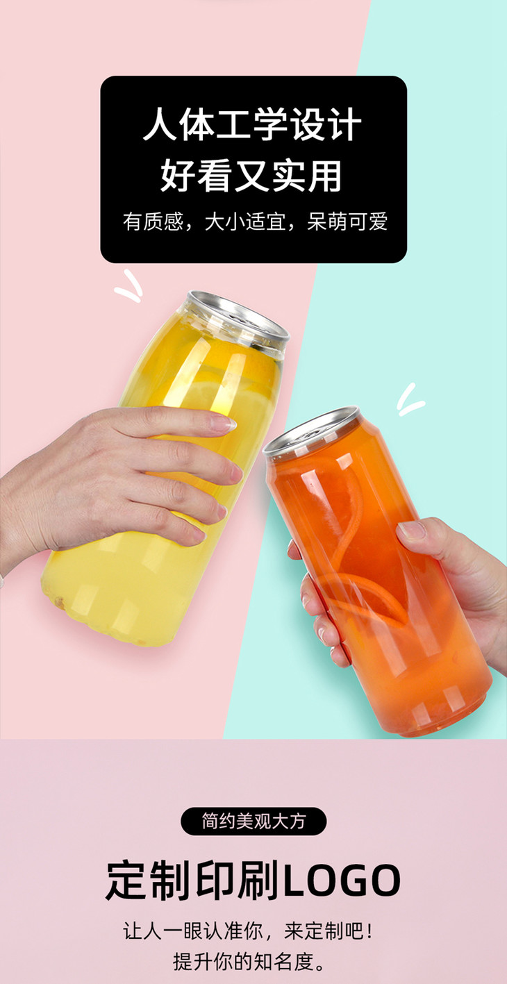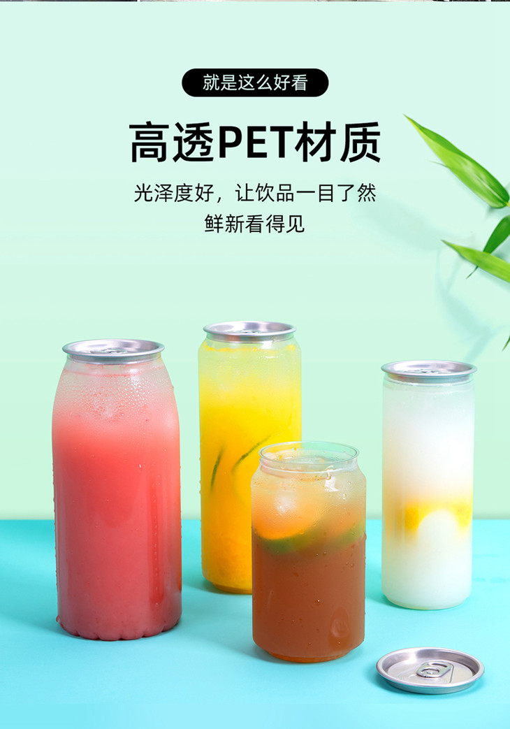 喇叭花 一次性易拉罐封口果汁饮料瓶PET密封冷饮瓶透明塑料奶茶杯