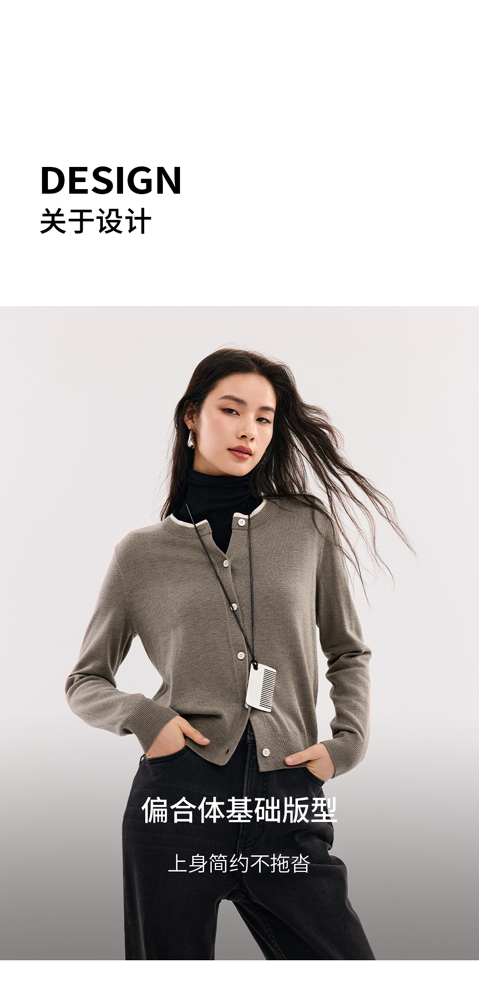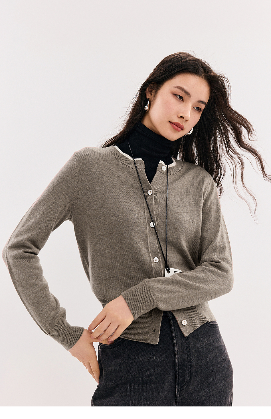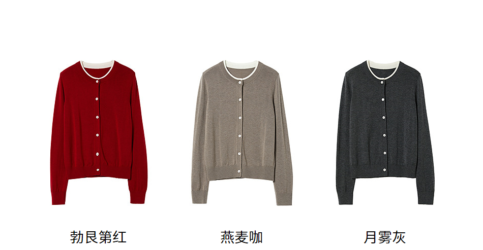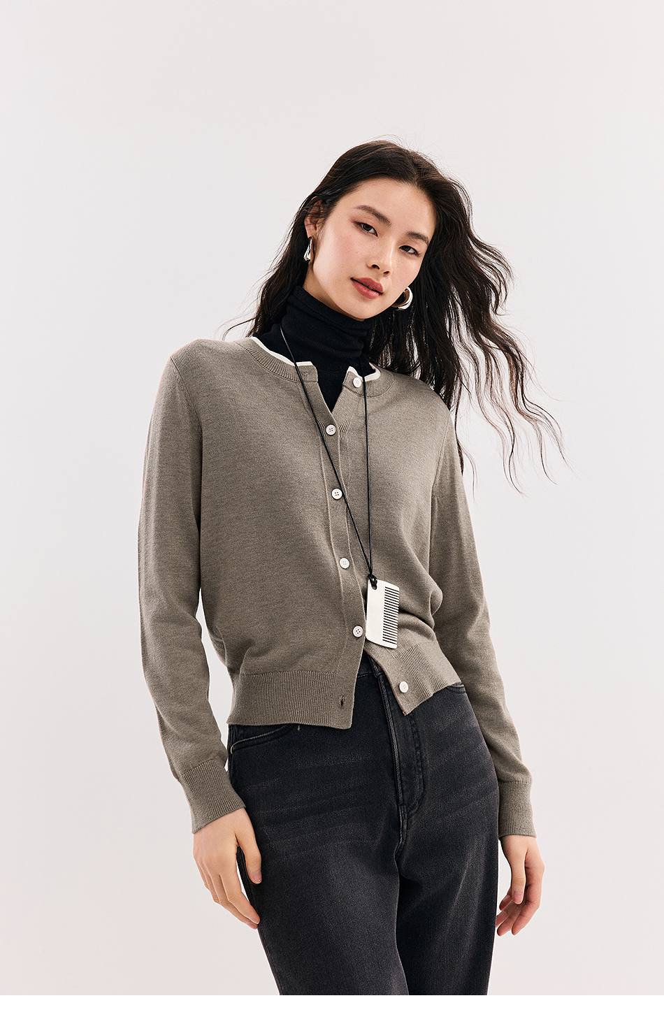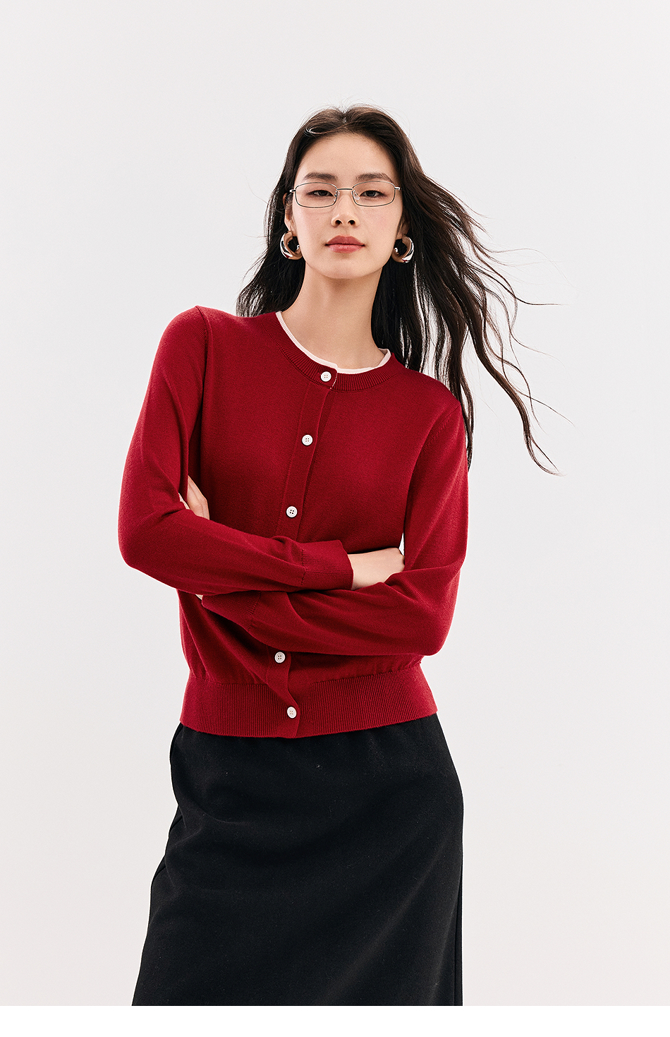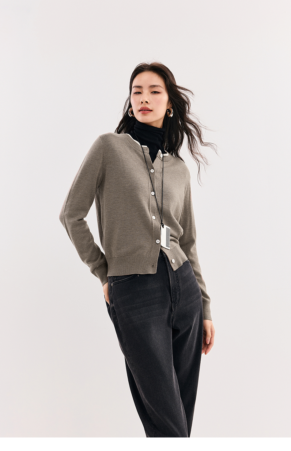 棉仓356605025-撞色边假两件长袖开衫 MIU系含羊毛针织衫简约正肩早秋外套