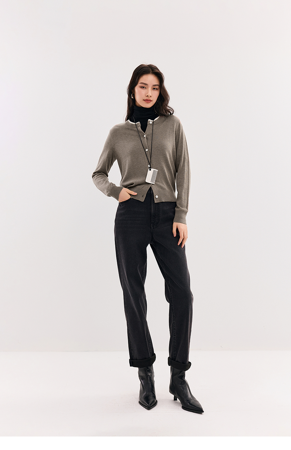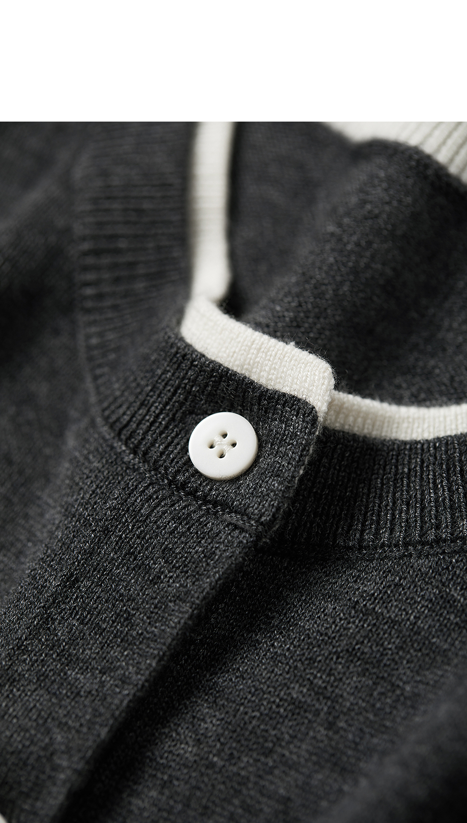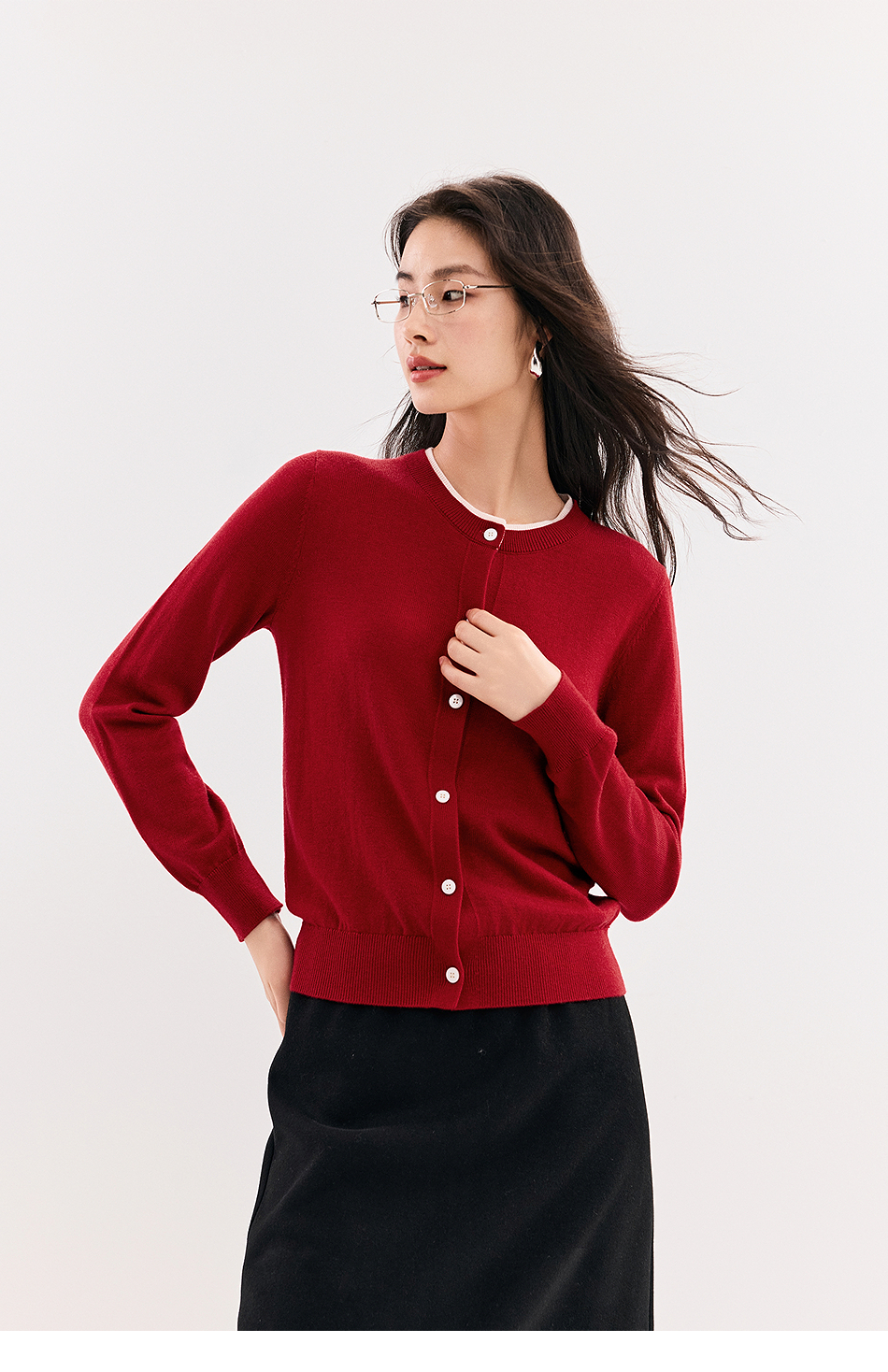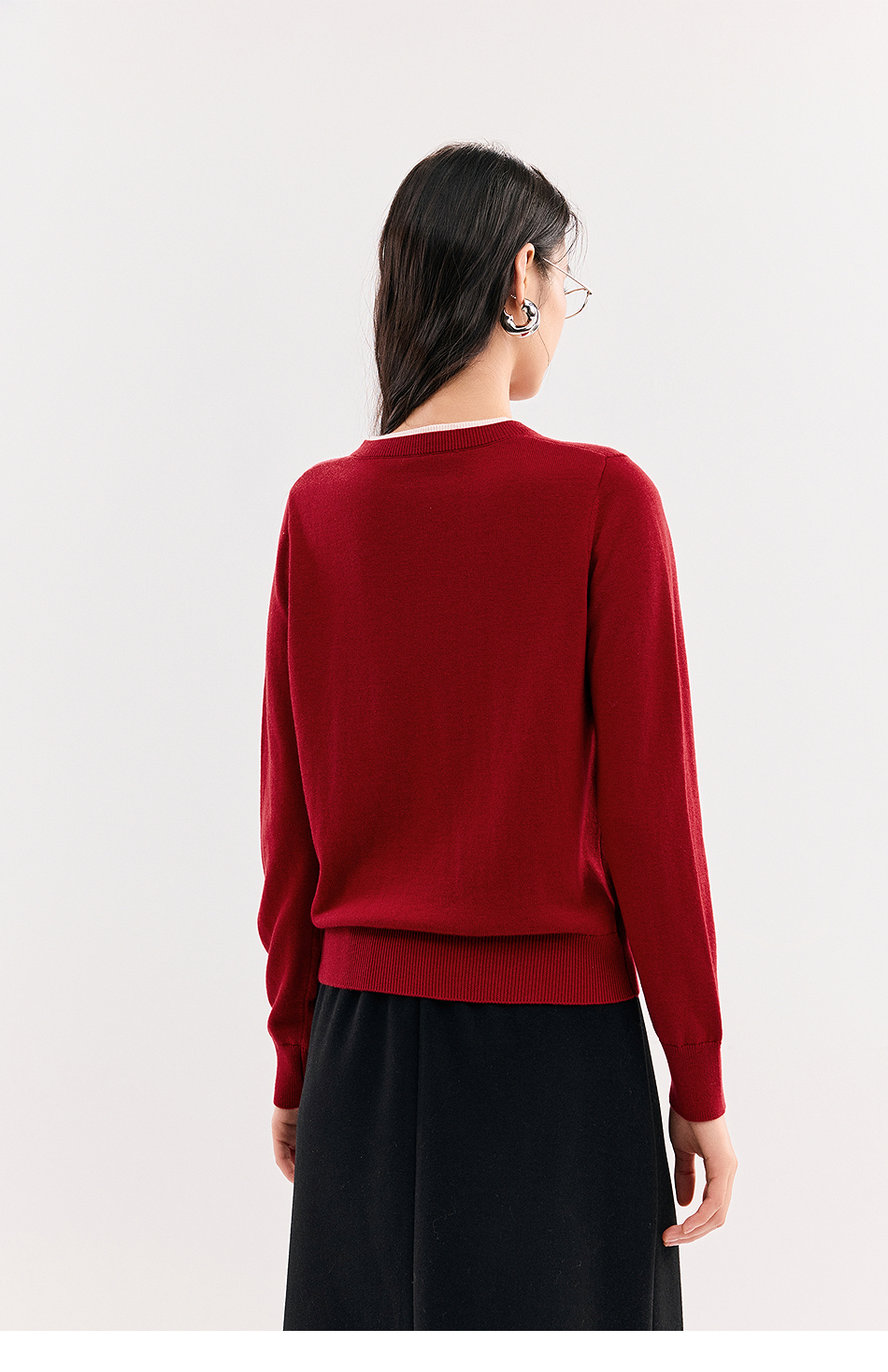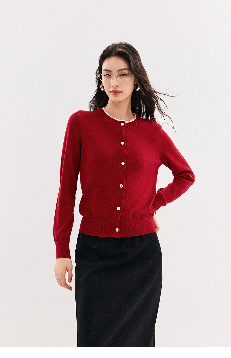 棉仓356605025-撞色边假两件长袖开衫 MIU系含羊毛针织衫简约正肩早秋外套