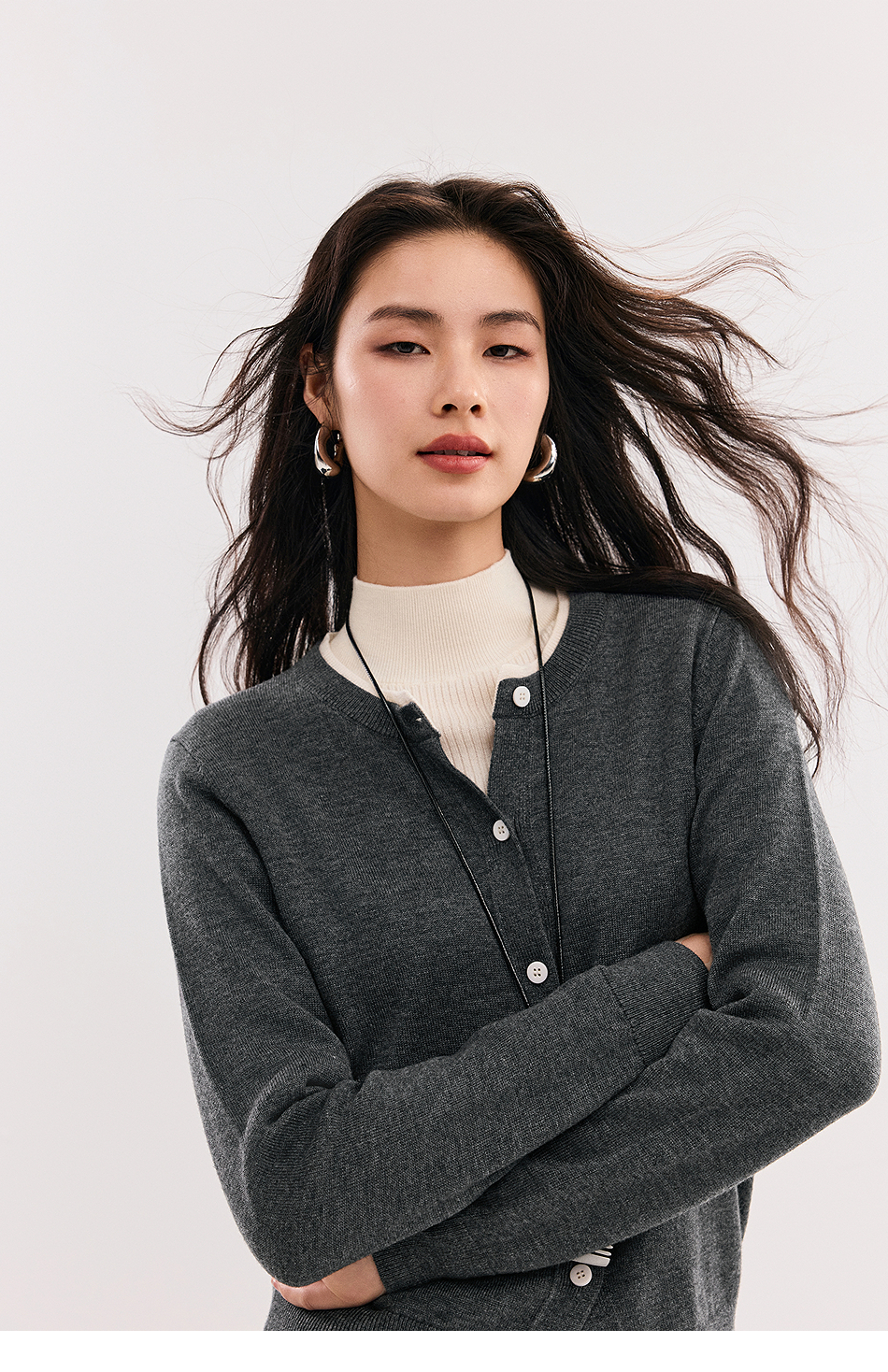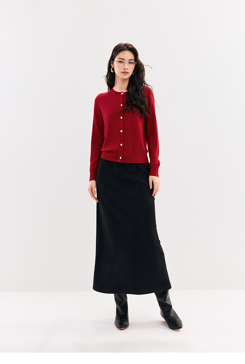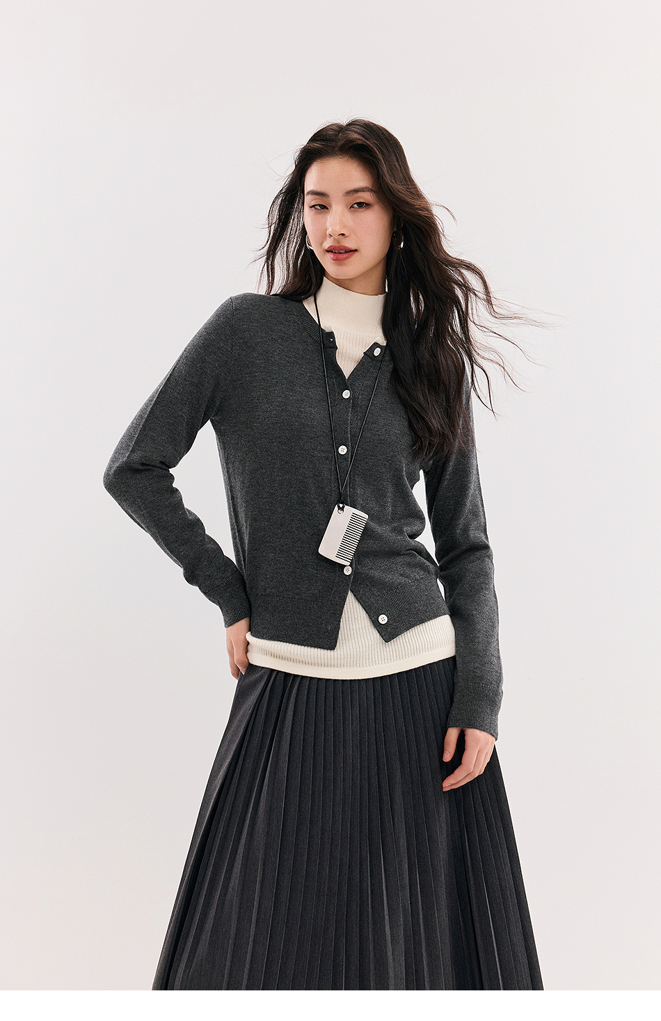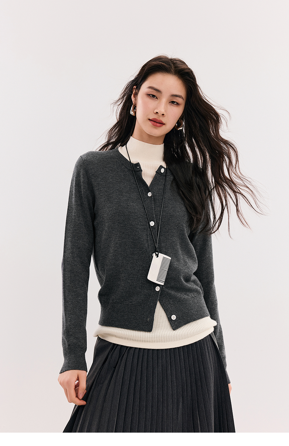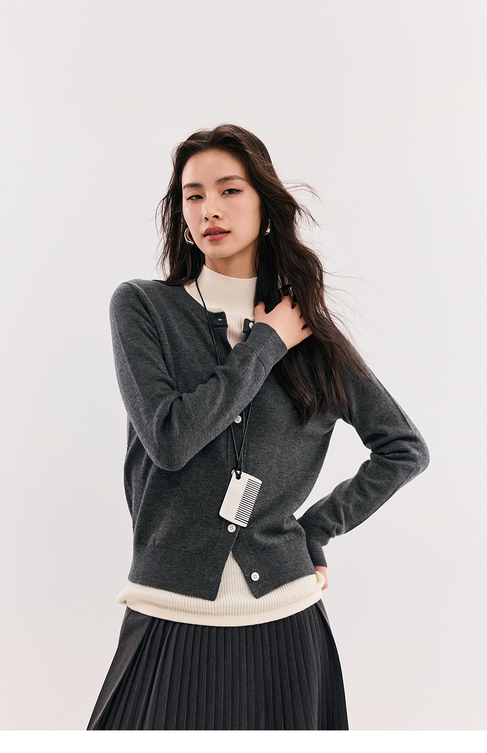 棉仓356605025-撞色边假两件长袖开衫 MIU系含羊毛针织衫简约正肩早秋外套