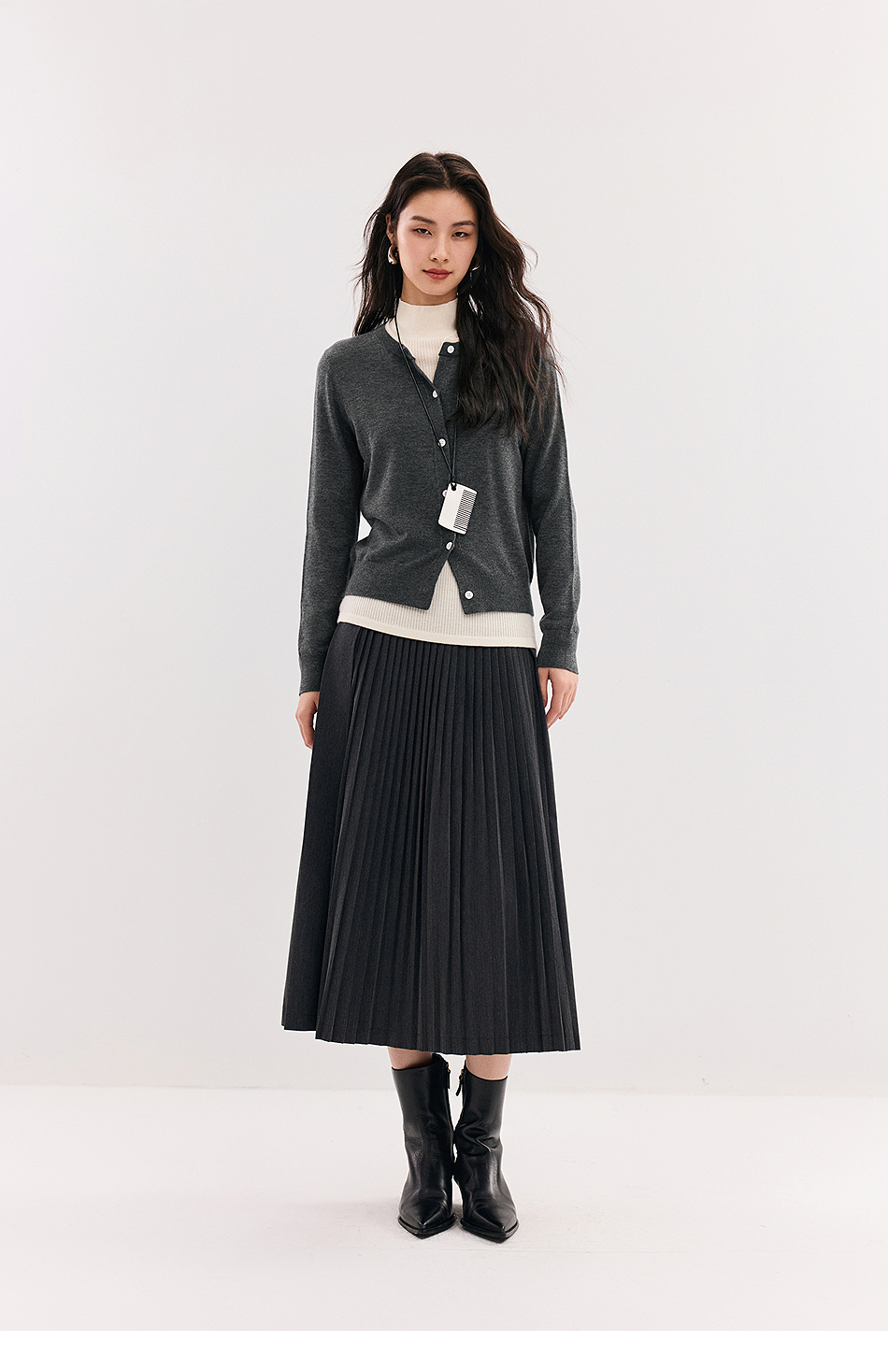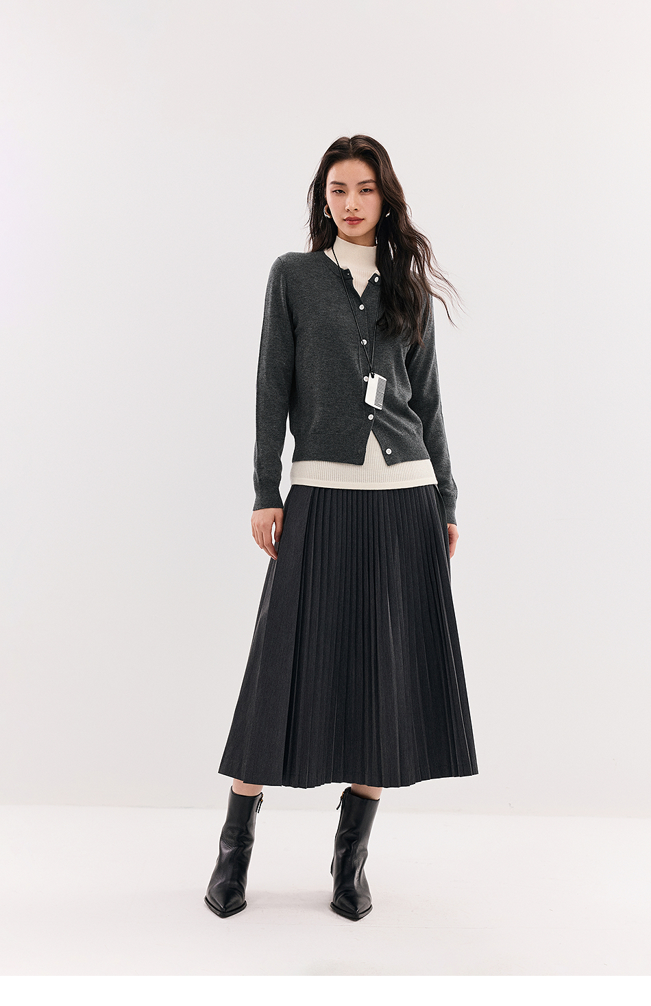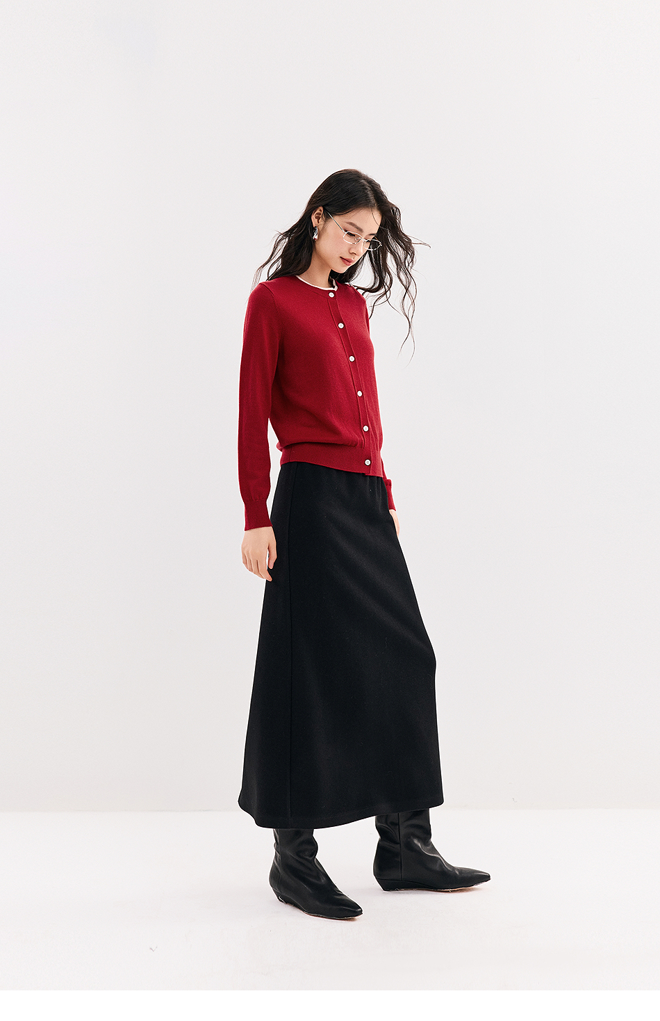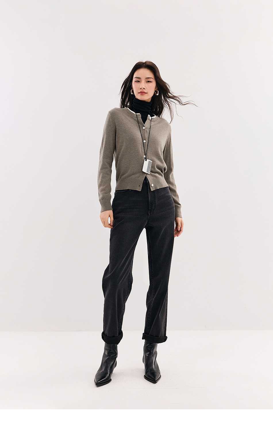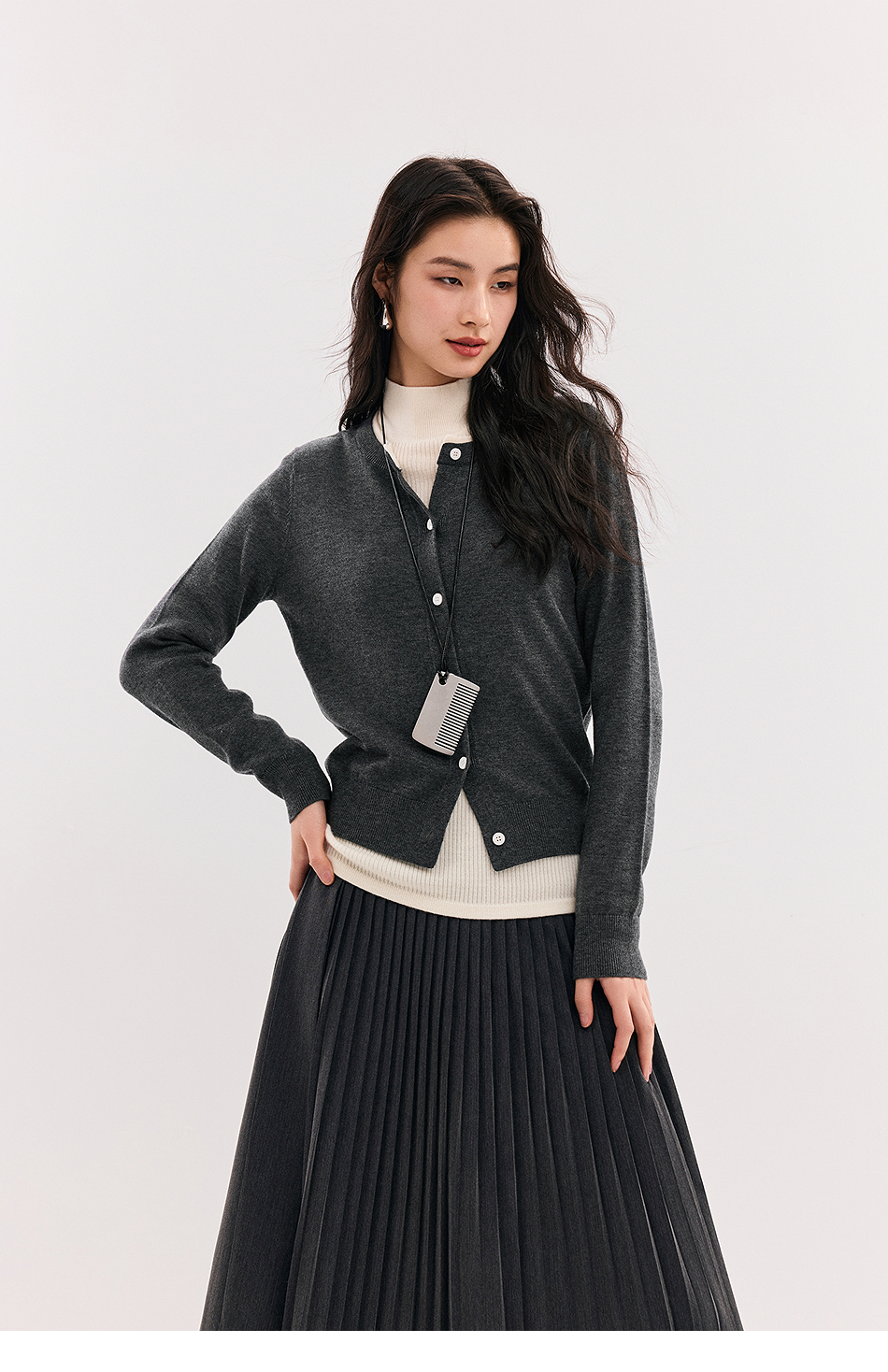 棉仓356605025-撞色边假两件长袖开衫 MIU系含羊毛针织衫简约正肩早秋外套