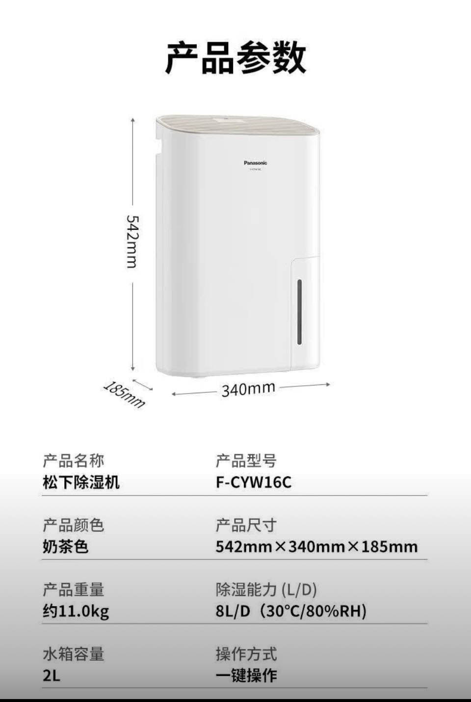 【春上新】10楼Panasonic/松下 家用除湿防霉净化吸湿器空气干燥机 F-CYW16C 吊牌价1999元 活动价1199元
