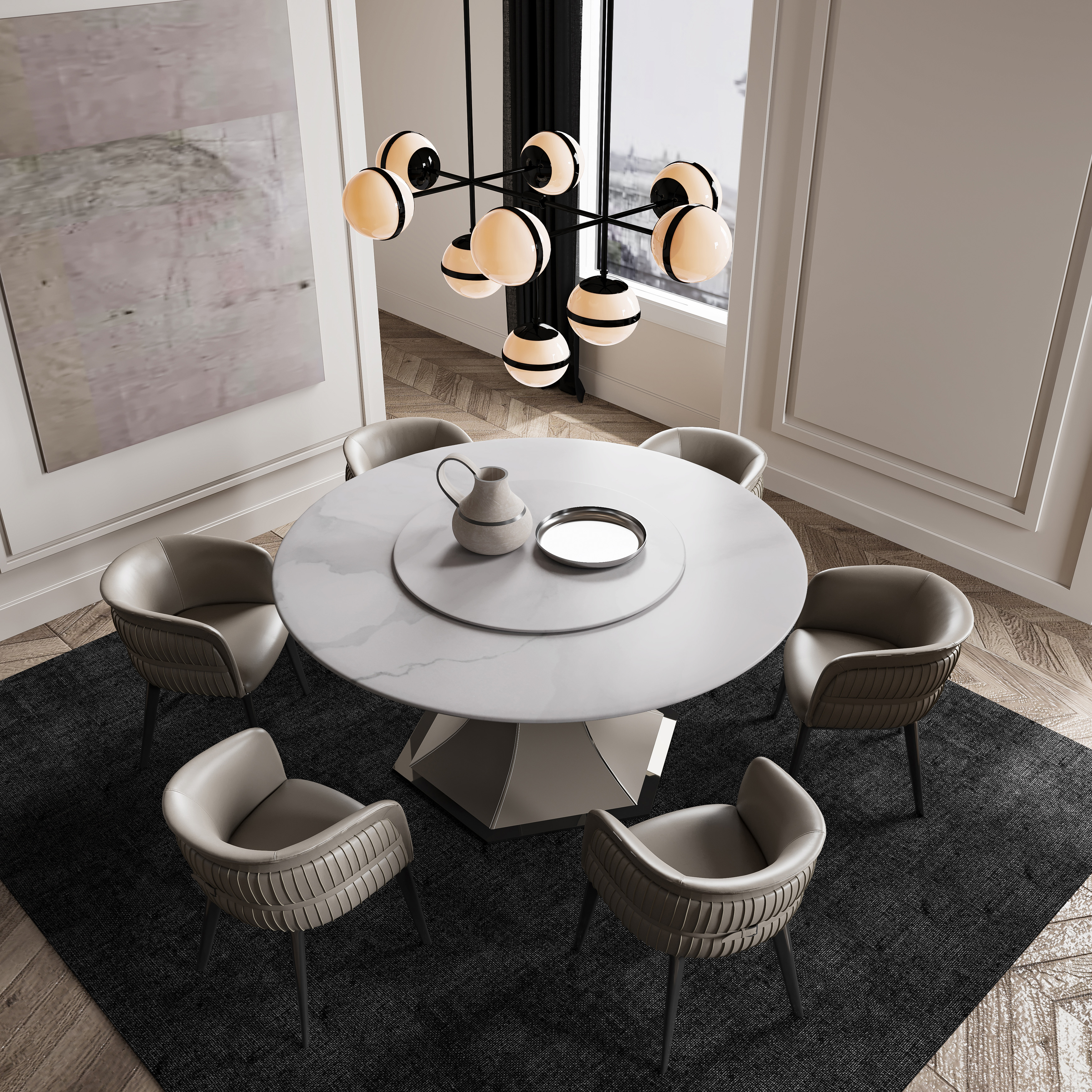 1.8米国产岩板 φ1800*785 (转盘φ1120*12) 桌面三块岩板由三条五金连接