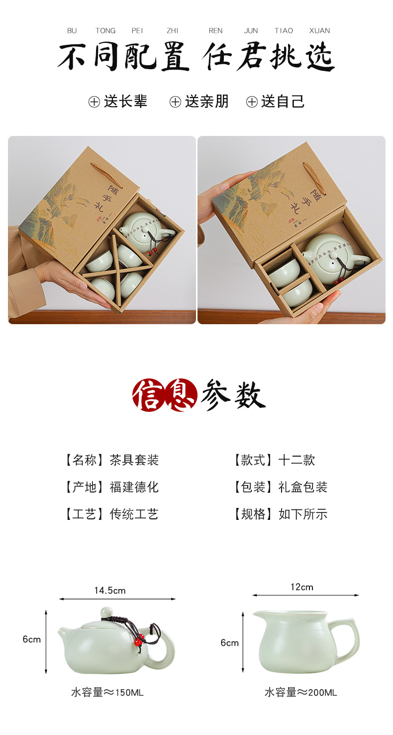 德化功夫茶具套装礼盒套装家用送礼整套便携式泡茶壶商务活动礼品