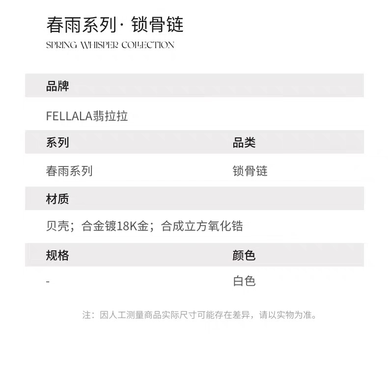 2楼Fellala/翡拉拉「春雨」轻奢简约项链高级感配饰货号926433202吊牌价1099现价989