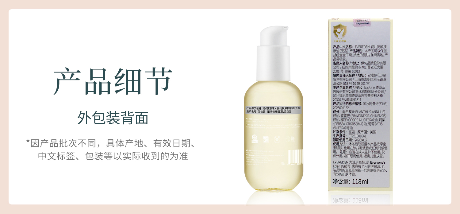 9楼母婴生活馆 Evereden安唯伊婴儿抚触油宝宝按摩油老爸抽检润肤油118mL 活动价:199元