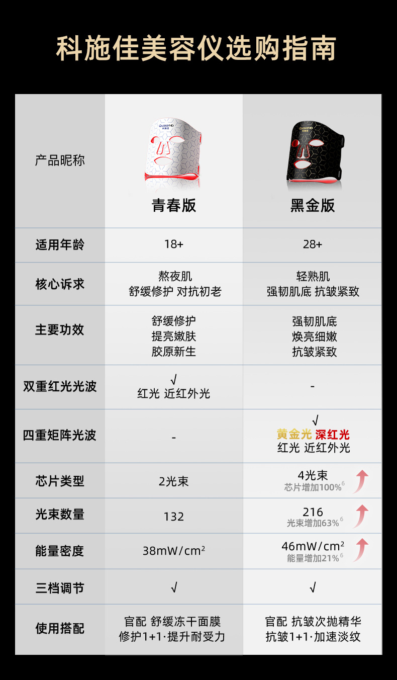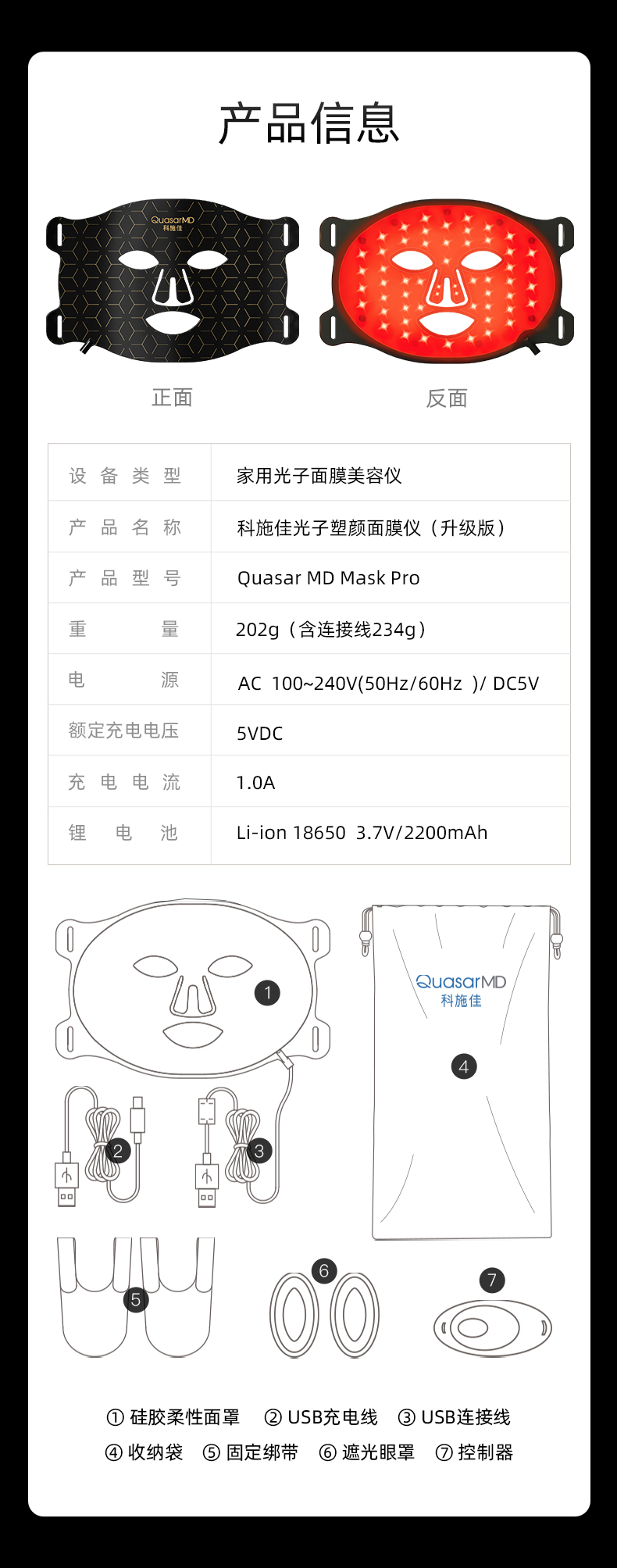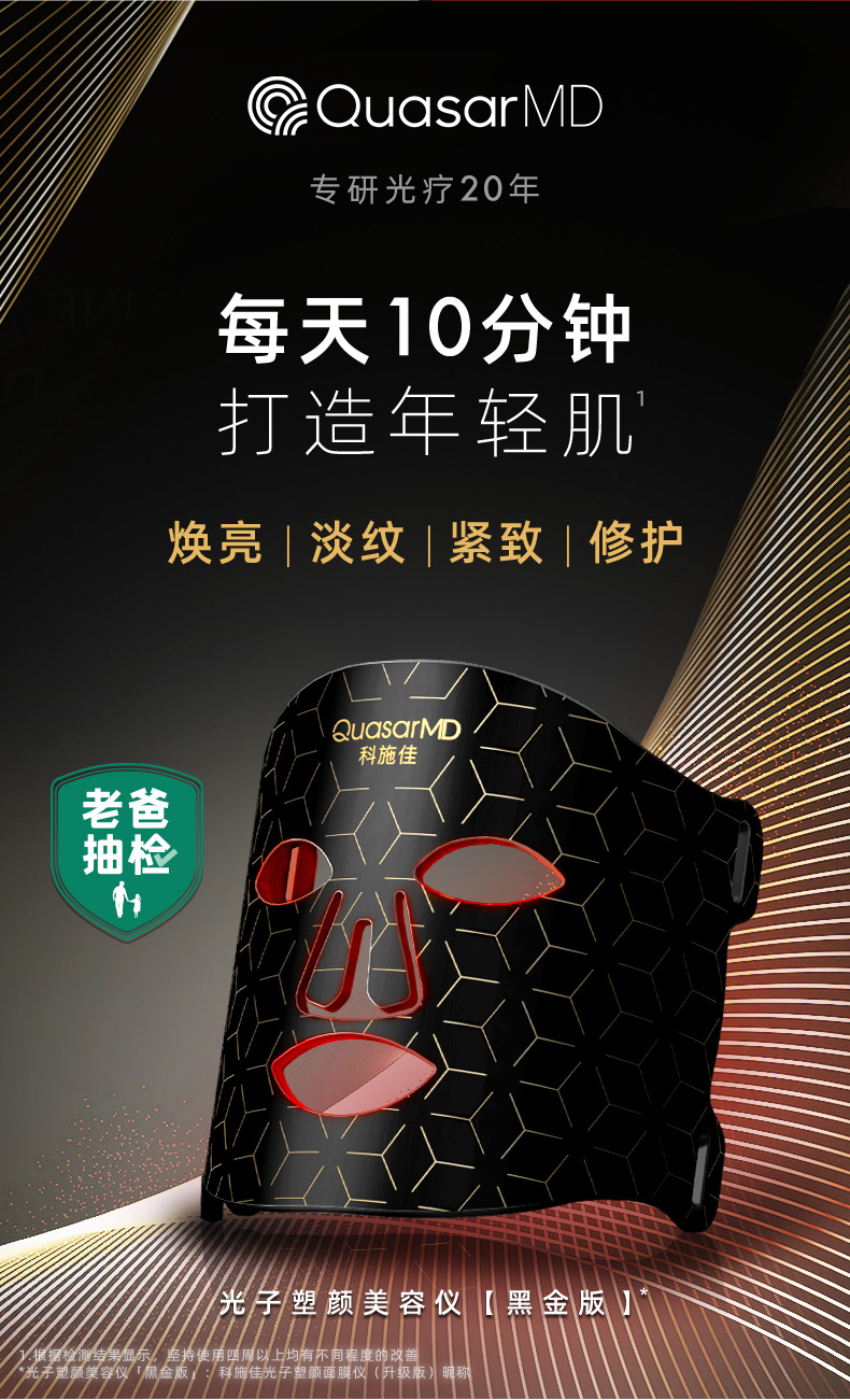 【清仓】科施佳QuasarMD红光紧致光谱面罩光子嫩肤家用脸部美容仪黑金版
