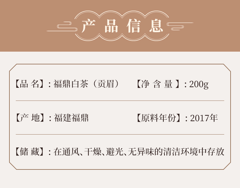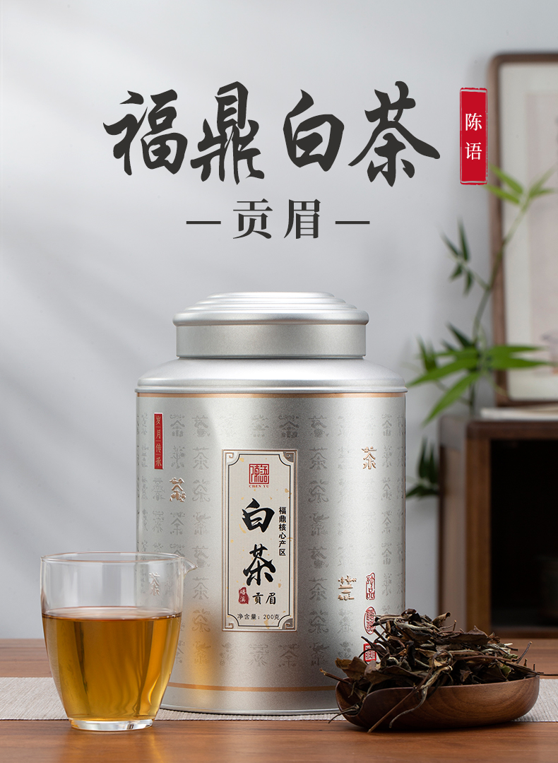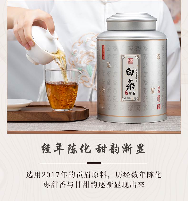陈语丨贡眉 福鼎白茶 散茶 2017年 一级 200g 配手提袋 新旧包装随机发货