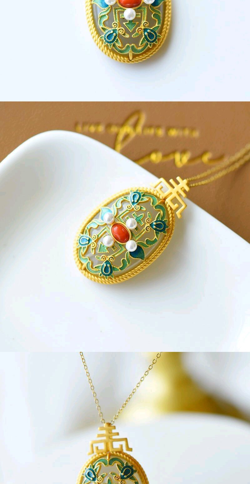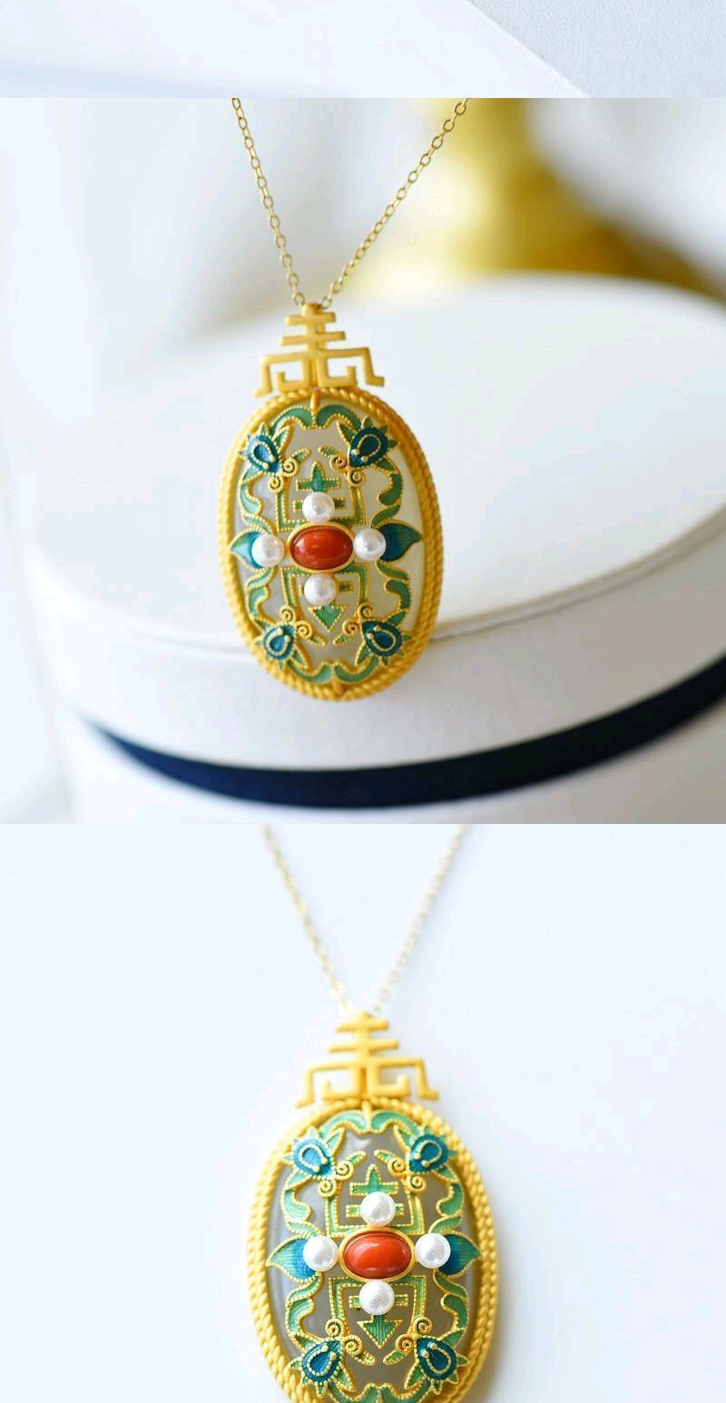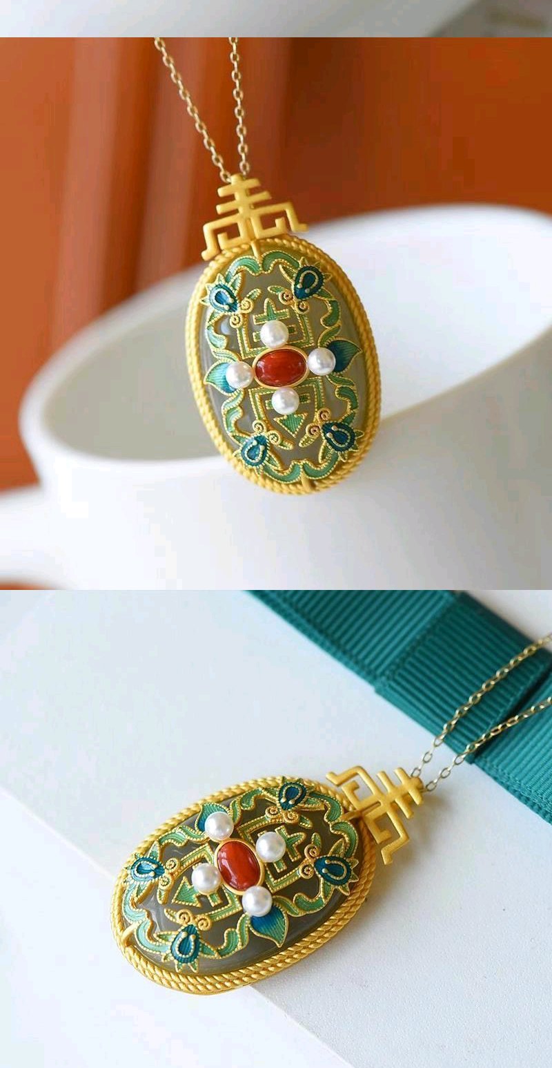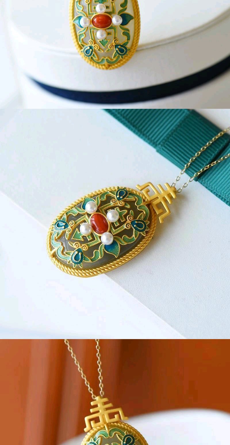天然烟紫银镶嵌点缀珍珠南红玛瑙复古国风项链