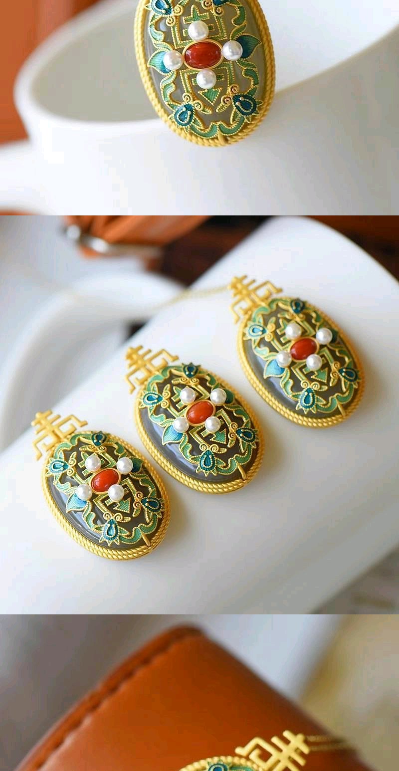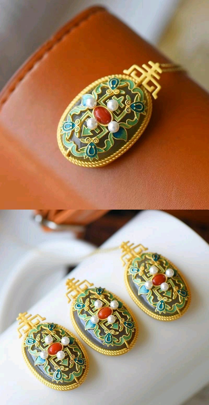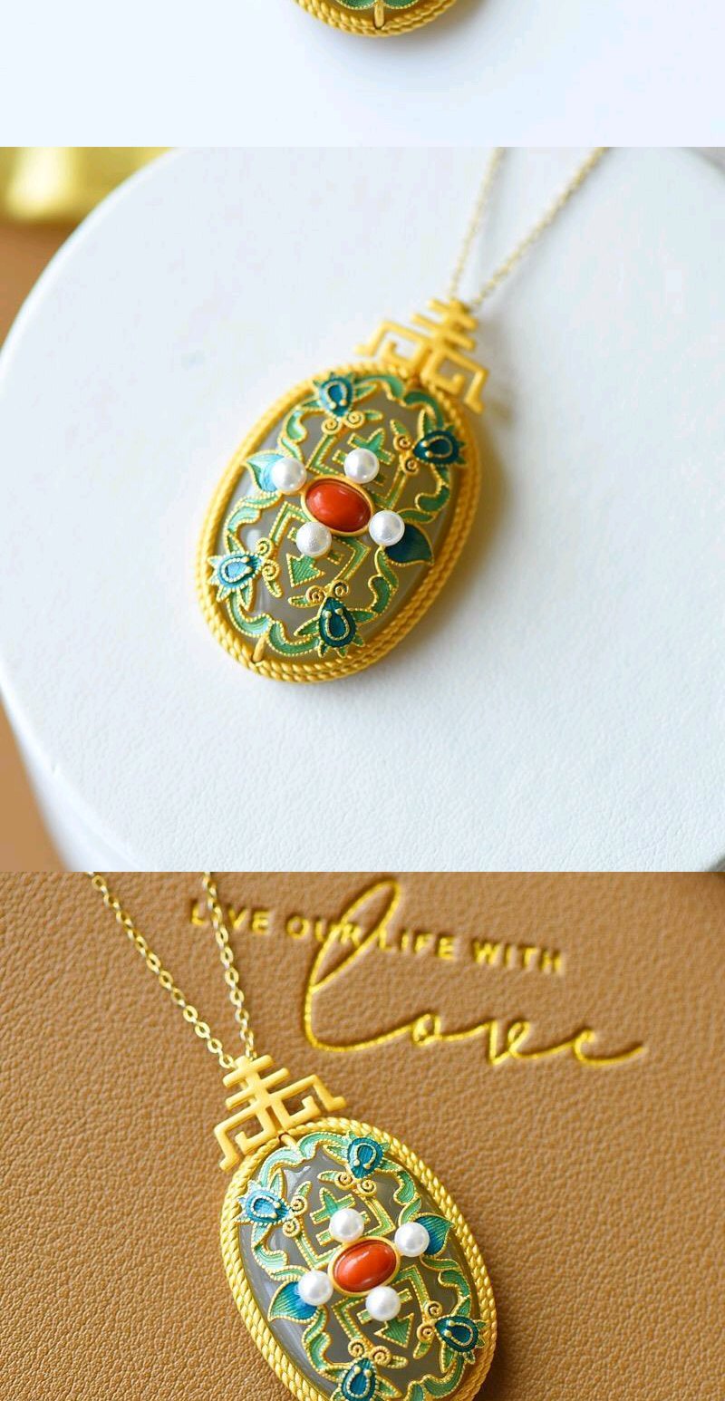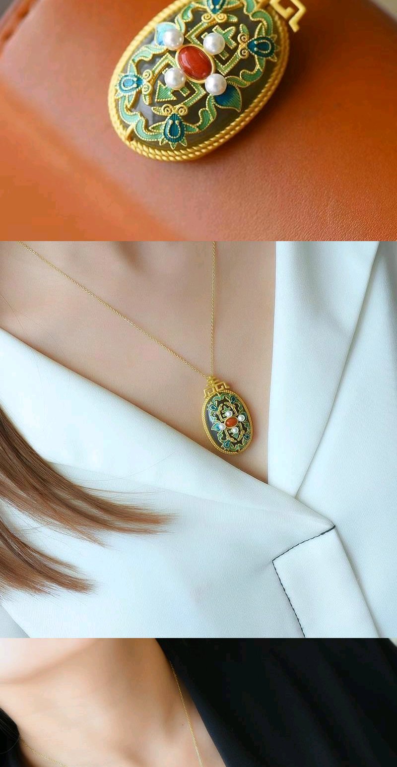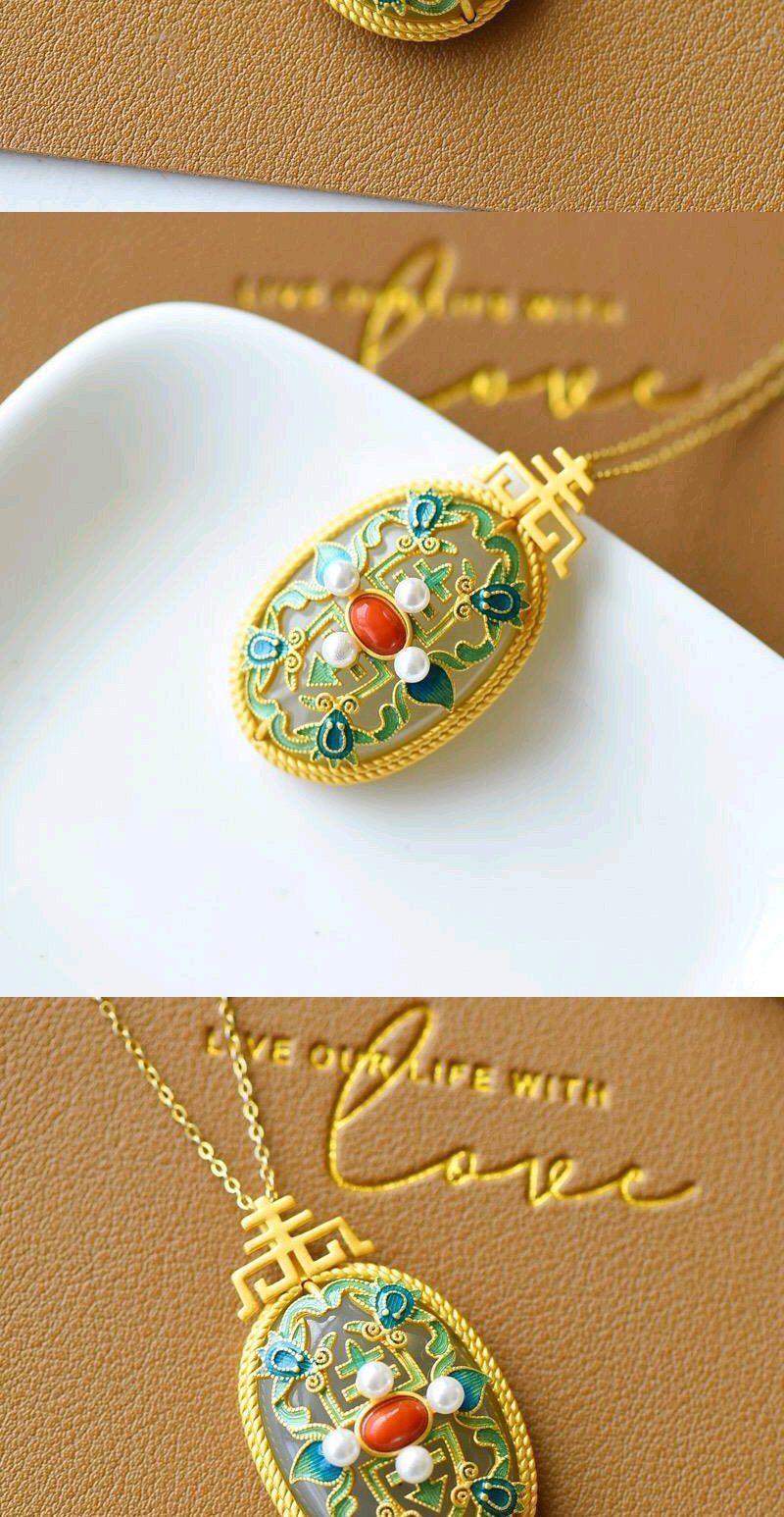 天然烟紫银镶嵌点缀珍珠南红玛瑙复古国风项链