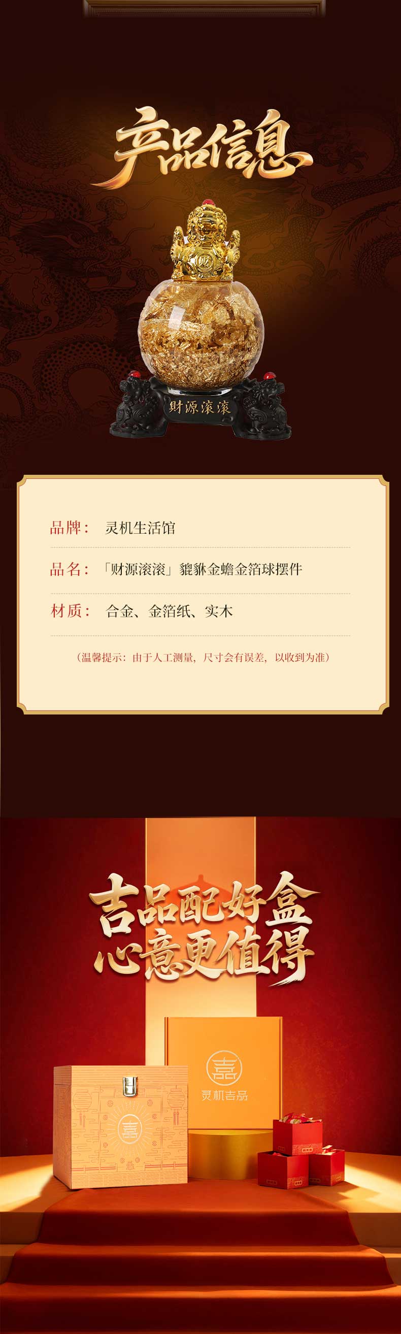 灵机2026年马年新款金箔貔貅金蟾开运球招财摆件