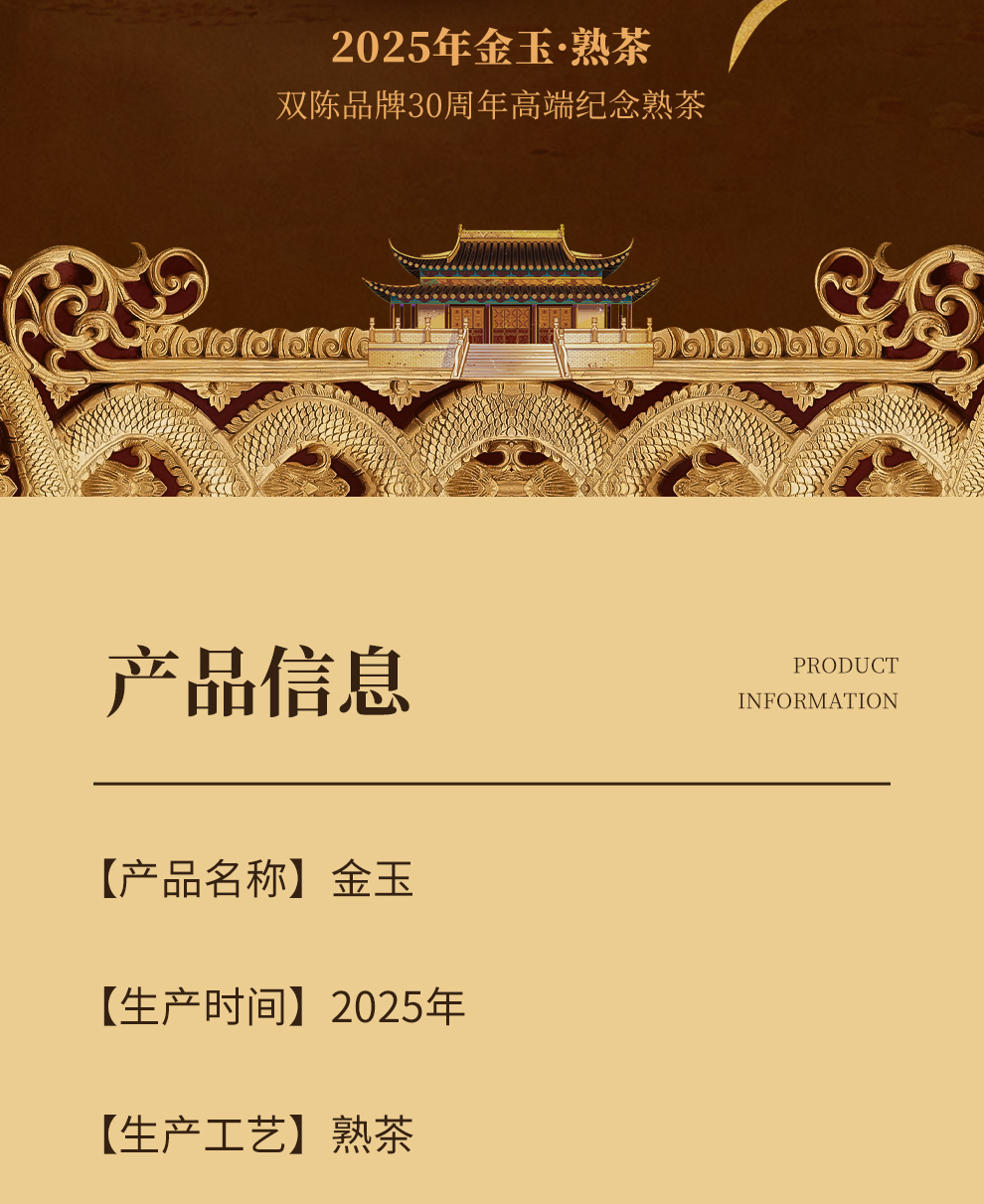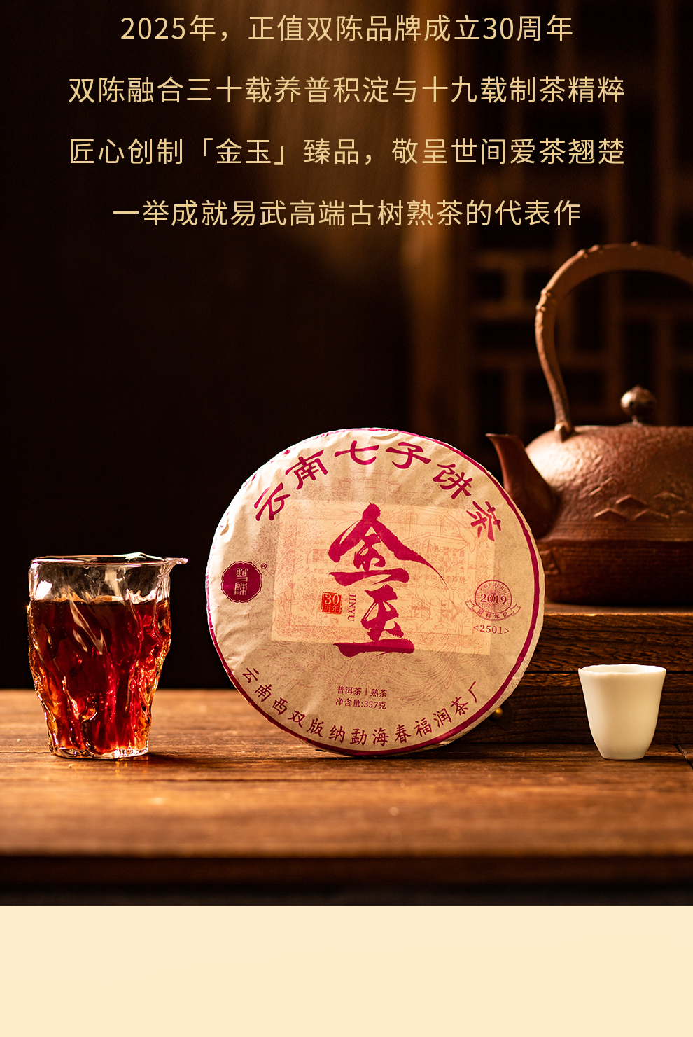 双陈普洱2025年金玉熟茶357克 金玉天成温润如玉