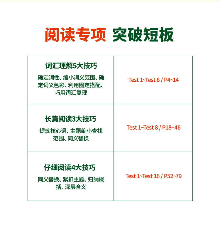 4. 赠送词汇与语法基础训练分册,补强语言基础,包含精选真题词汇默写训练,记2000词真题高频词;总结7大语法点,看懂解题句;