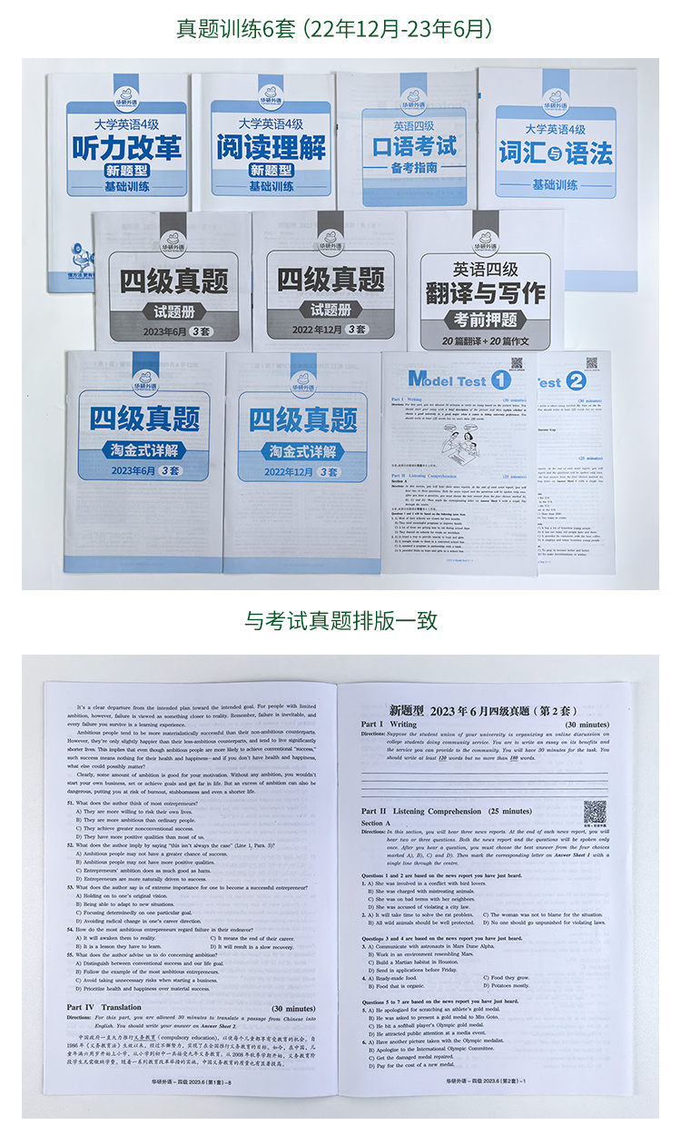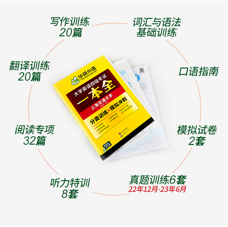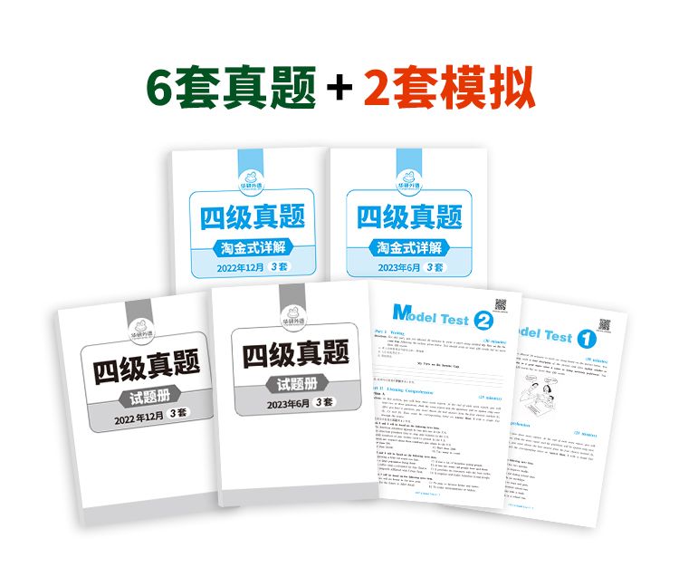 音频:真题训练、英语四级标准模拟卷、听力改革基础训练分册(内文微信扫码获取);口语考试备考指南样卷音频