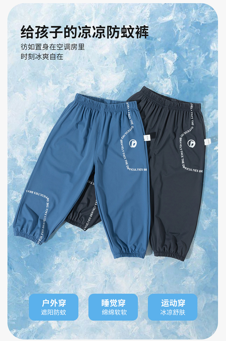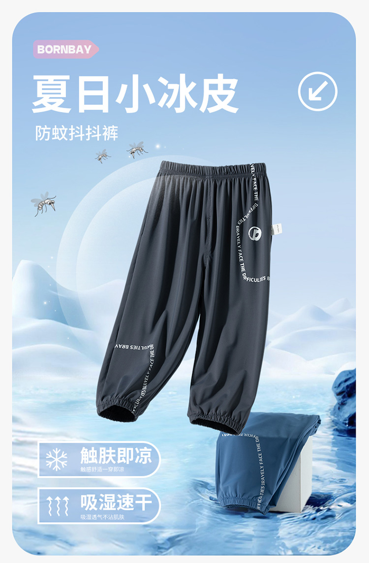 贝贝怡【凉感速干个性印花防蚊裤】25春夏新款男童宽松透气冰感休闲裤ZB2EK015
