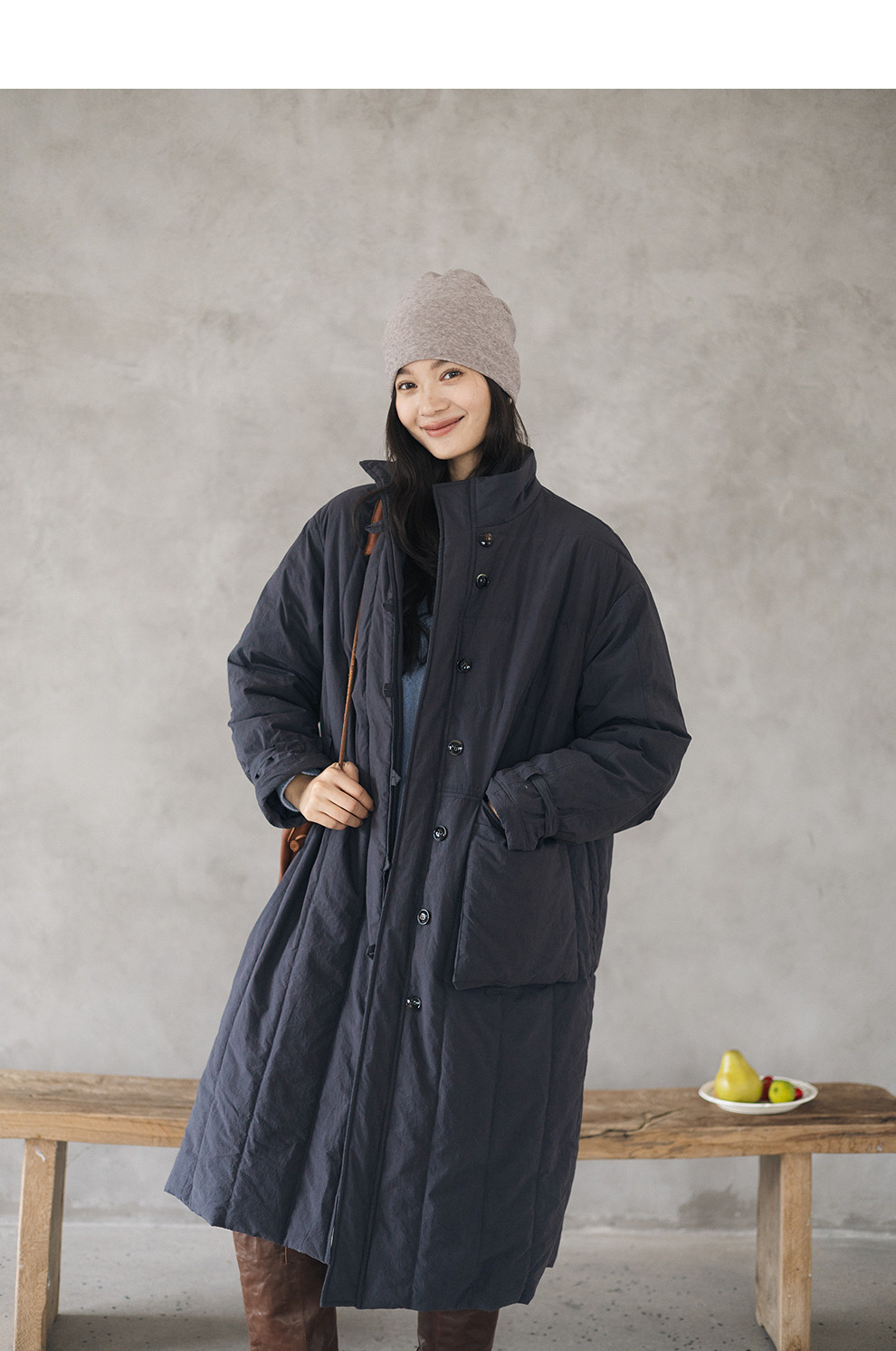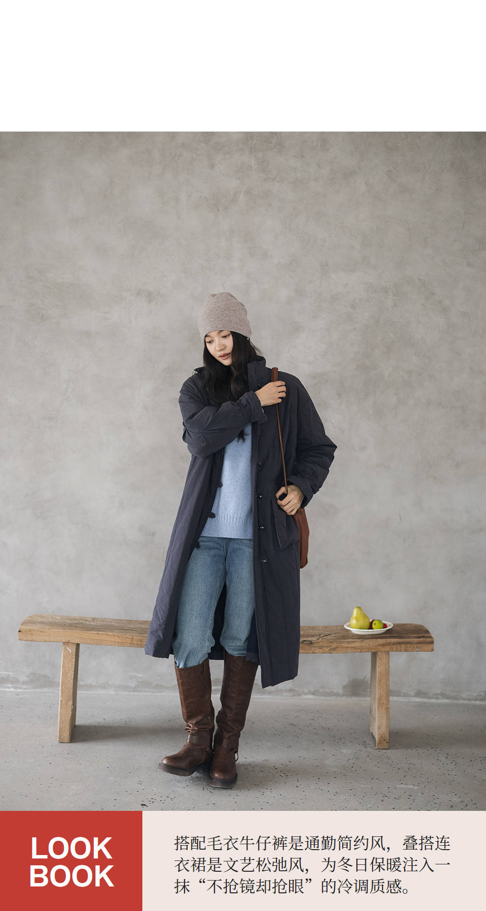 绽放821朵/加厚棉立领开襟长款棉服女保暖简约棉衣冬季新款厚外套