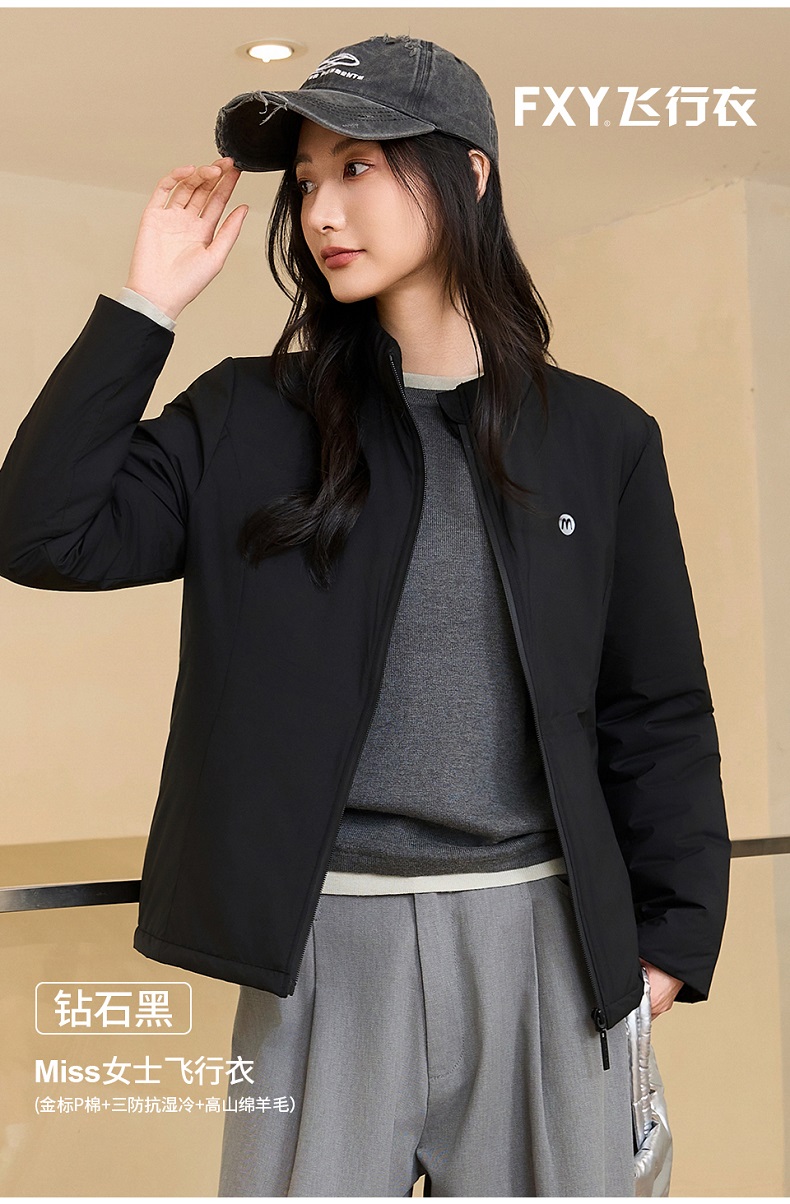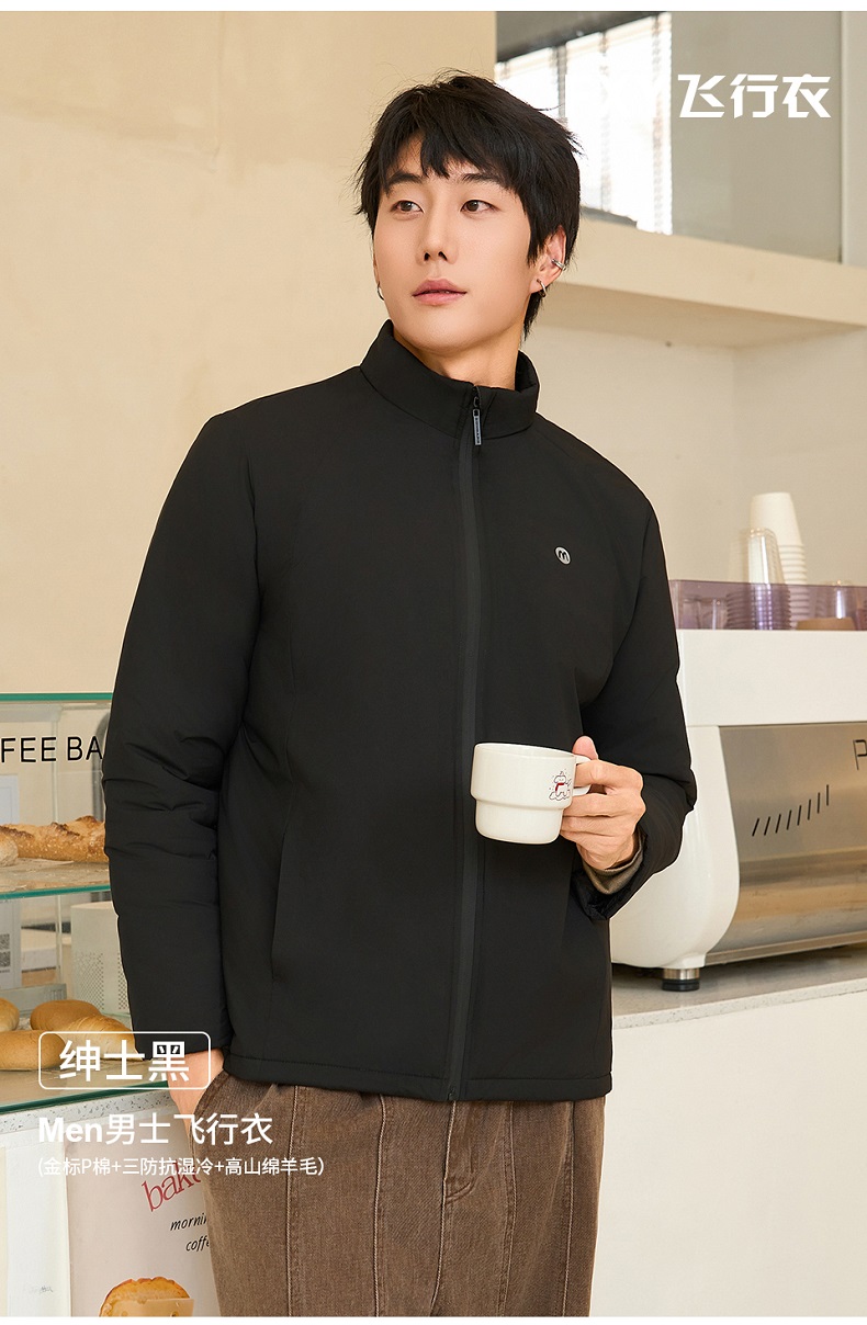 【长效原纱三防】【超轻盈巨保暖,保暖性远超羽绒】冬季新款情侣SHUZHIYU金标P棉服飞行员夹克加棉立领绵羊毛飞行衣外套