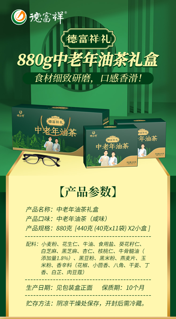 德富祥中老年礼盒880g,中秋端午送长辈,送礼必备,陕西特产清真美食,早餐代餐必备