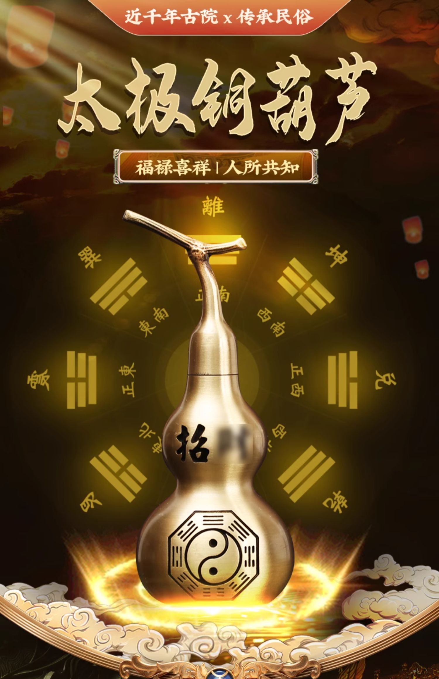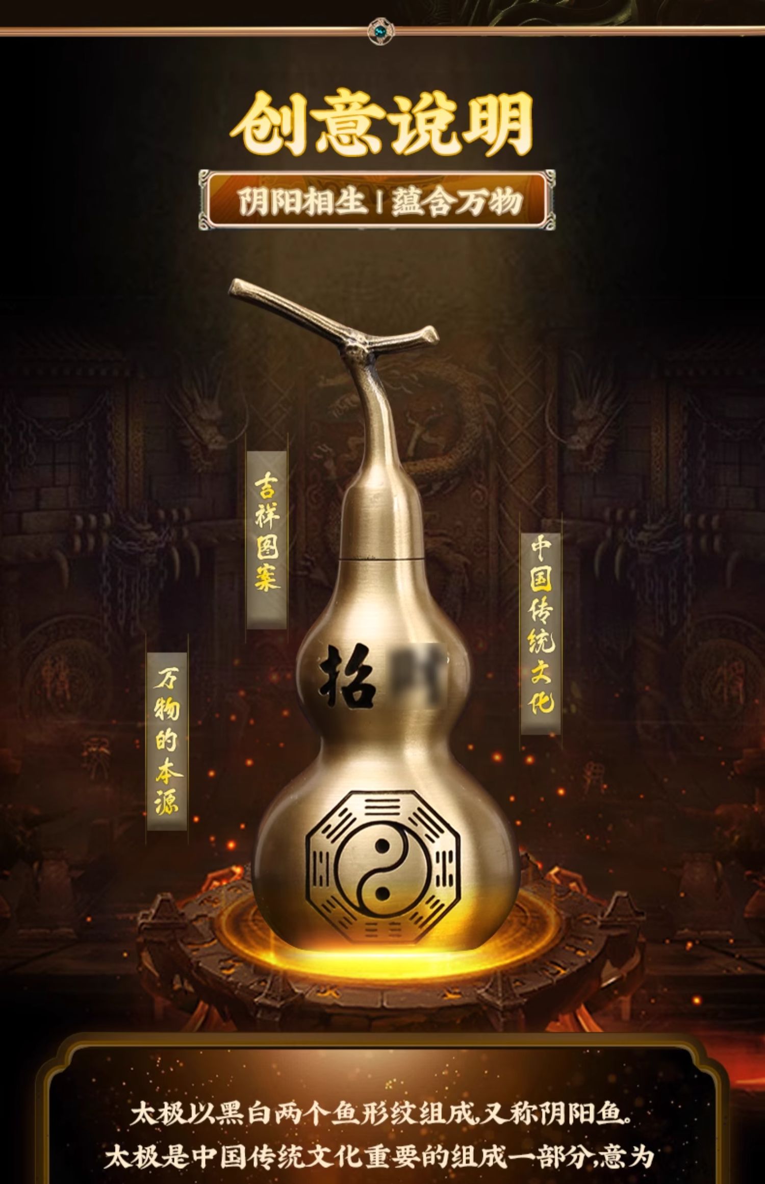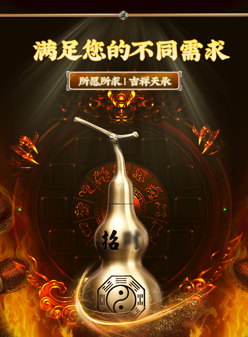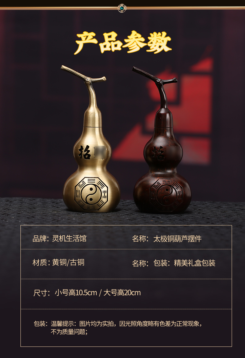 【祈愿吉品】太极古铜金铜葫芦摆件