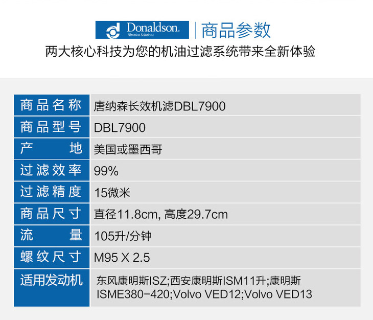 唐纳森蓝长效机油滤清器DBL7900 通用于弗列加LF9001