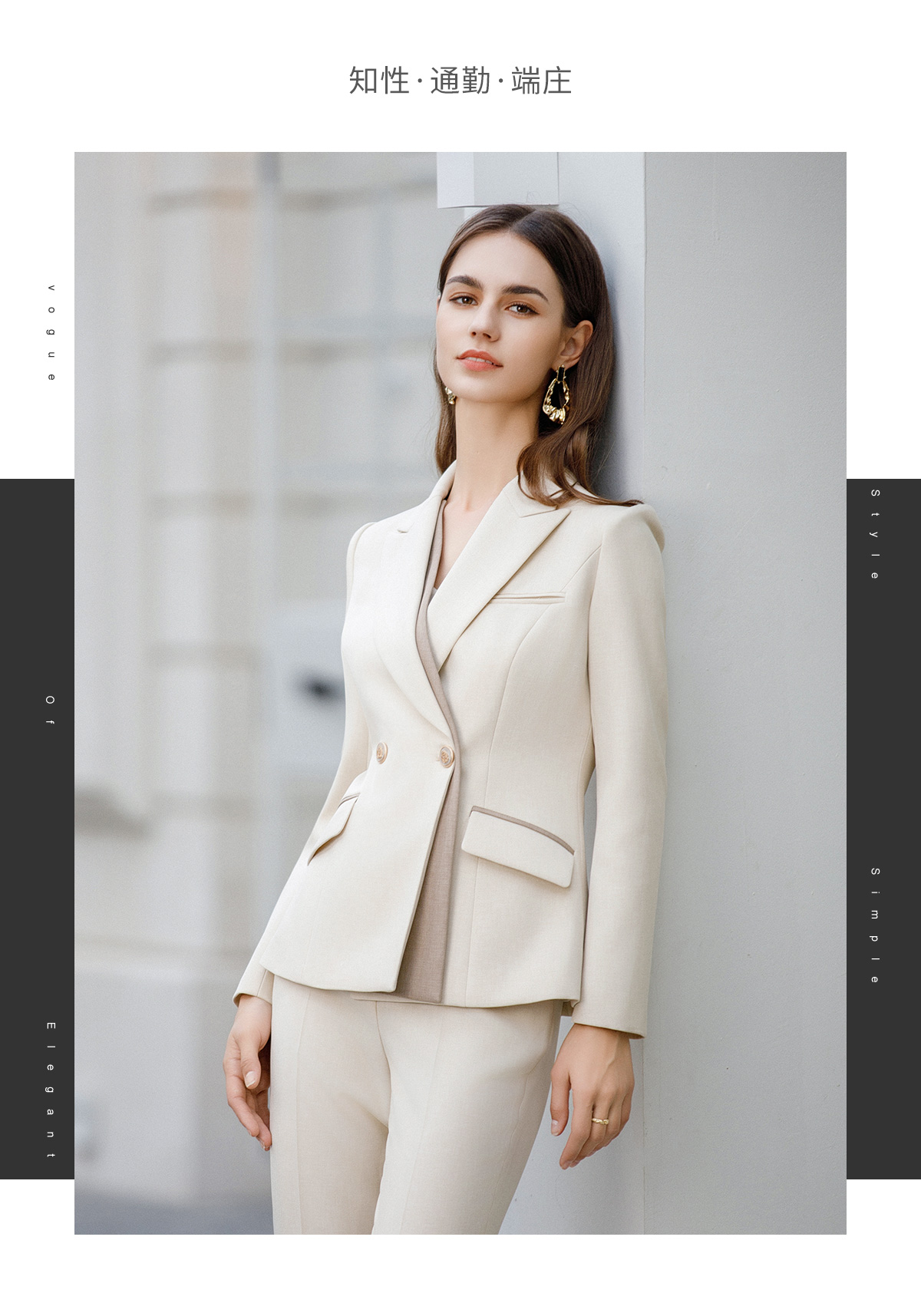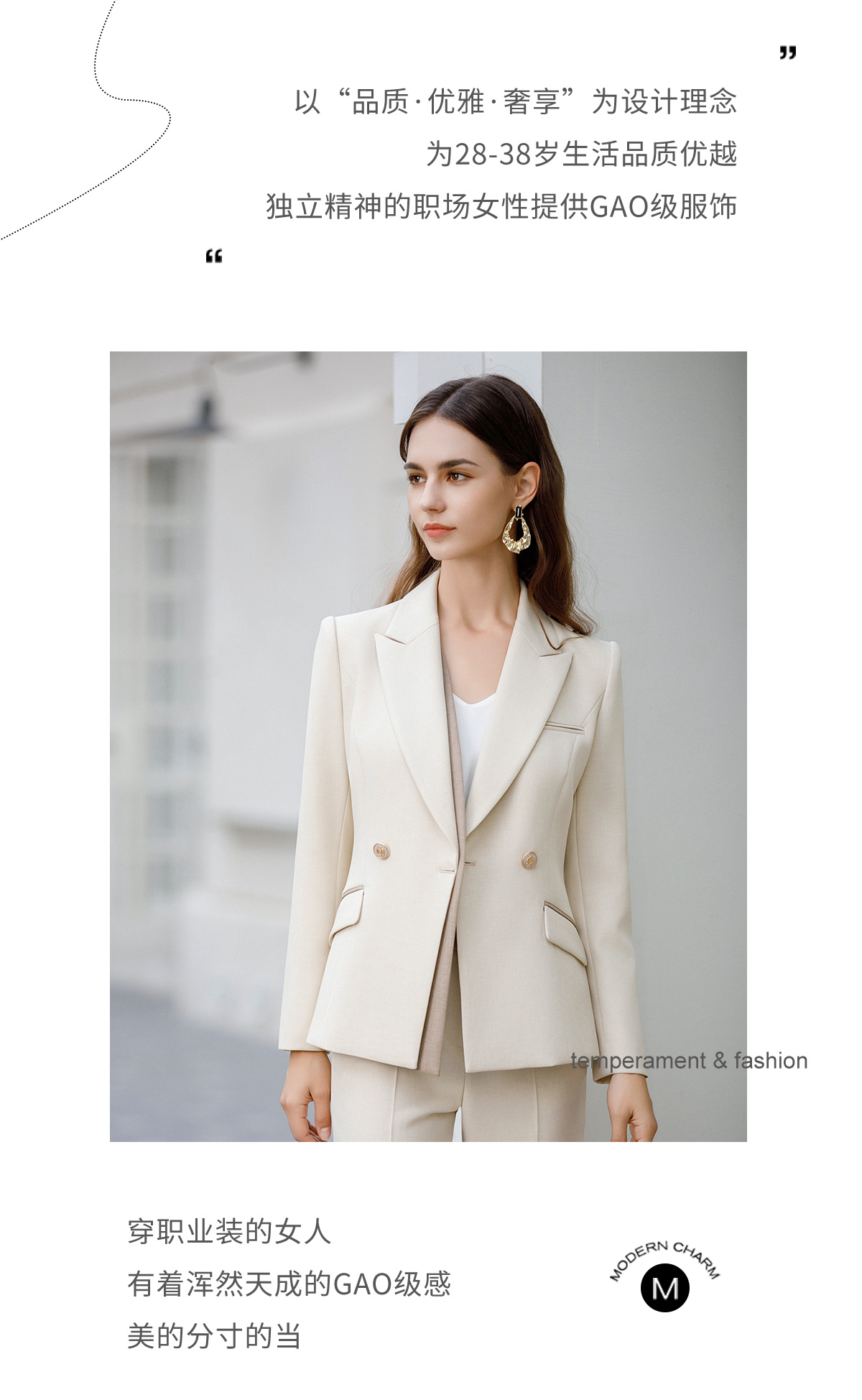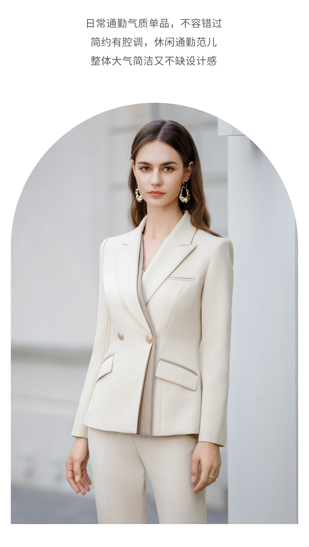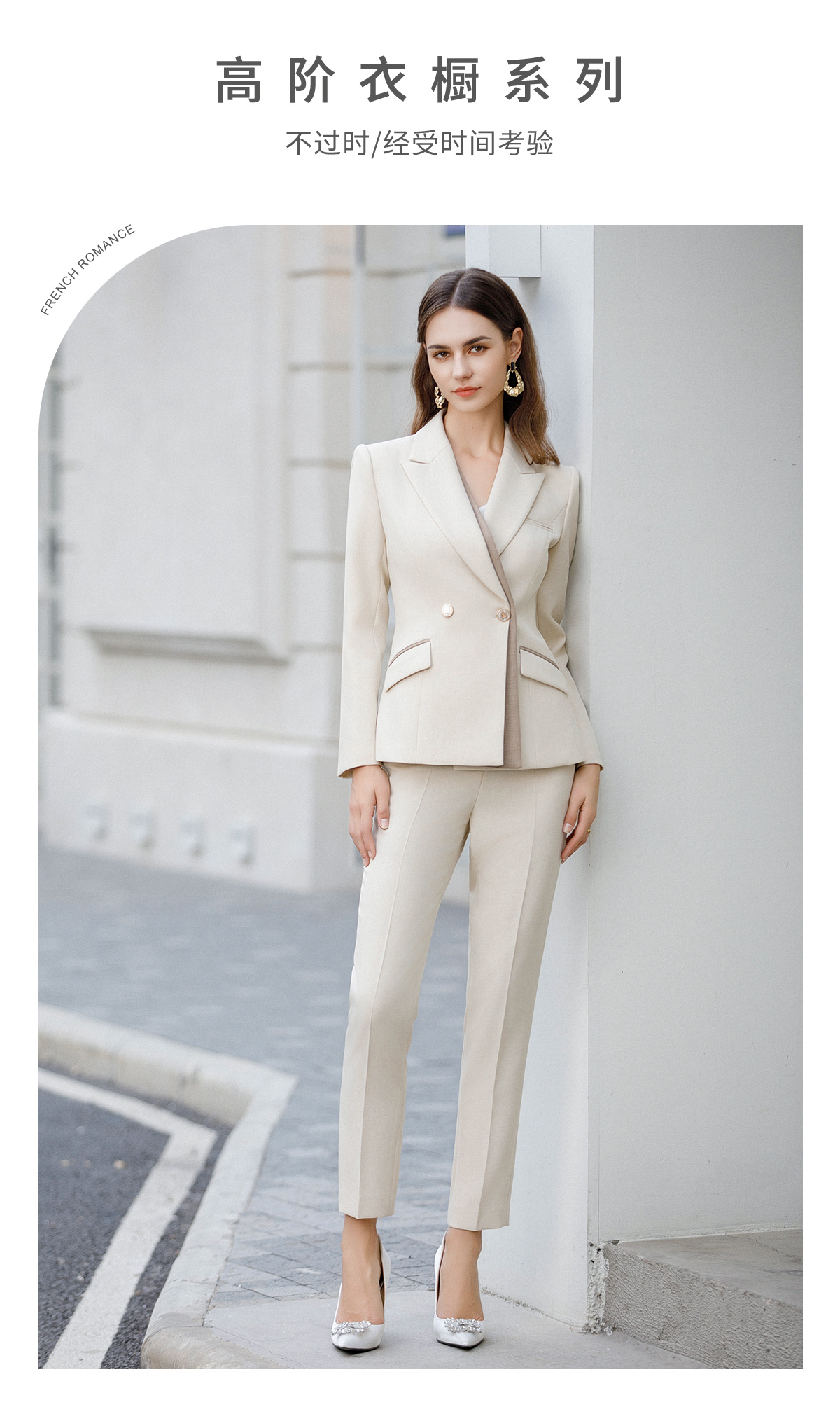 AD前台工作装女高端职场工作服2024新款接拼浅色西装外套经理正装