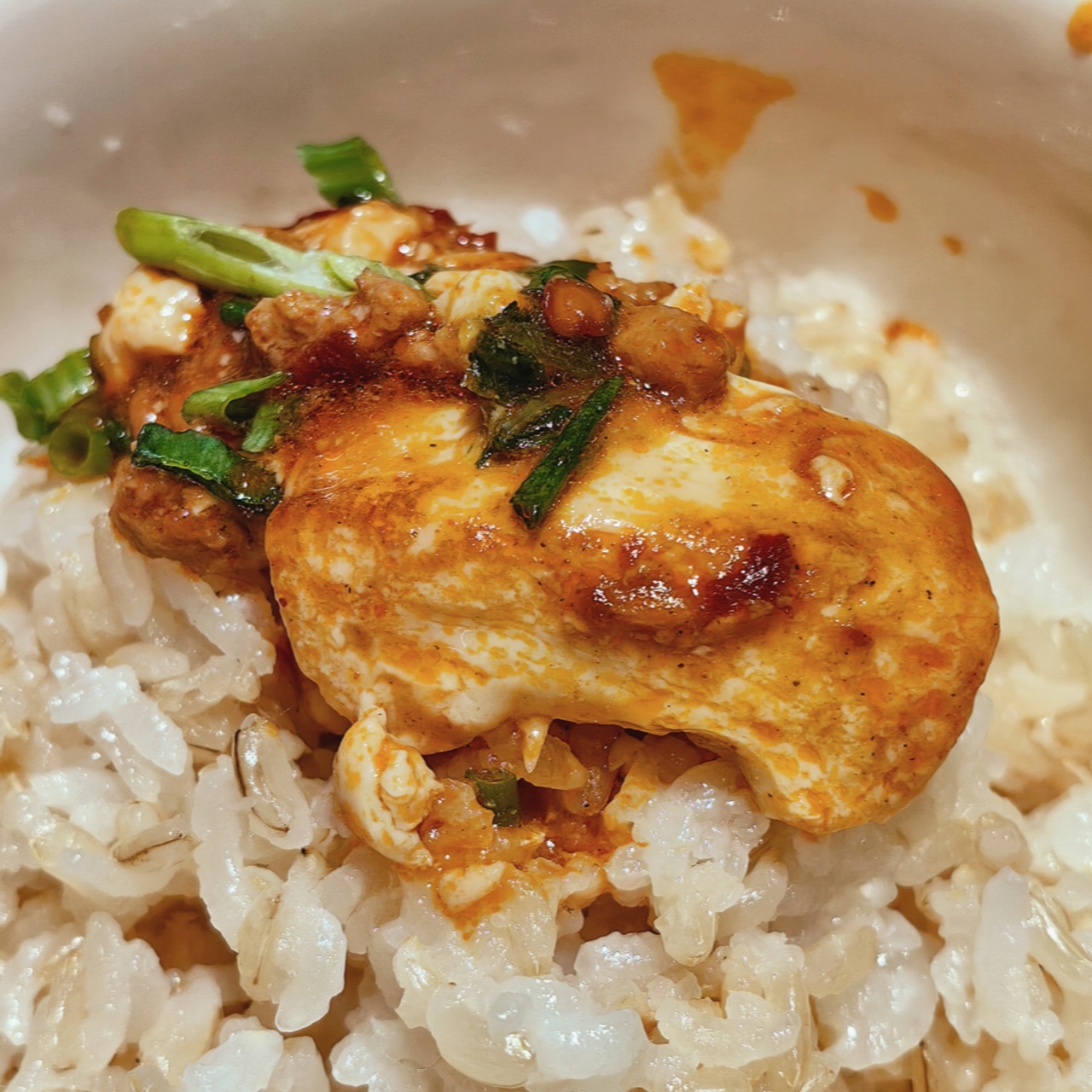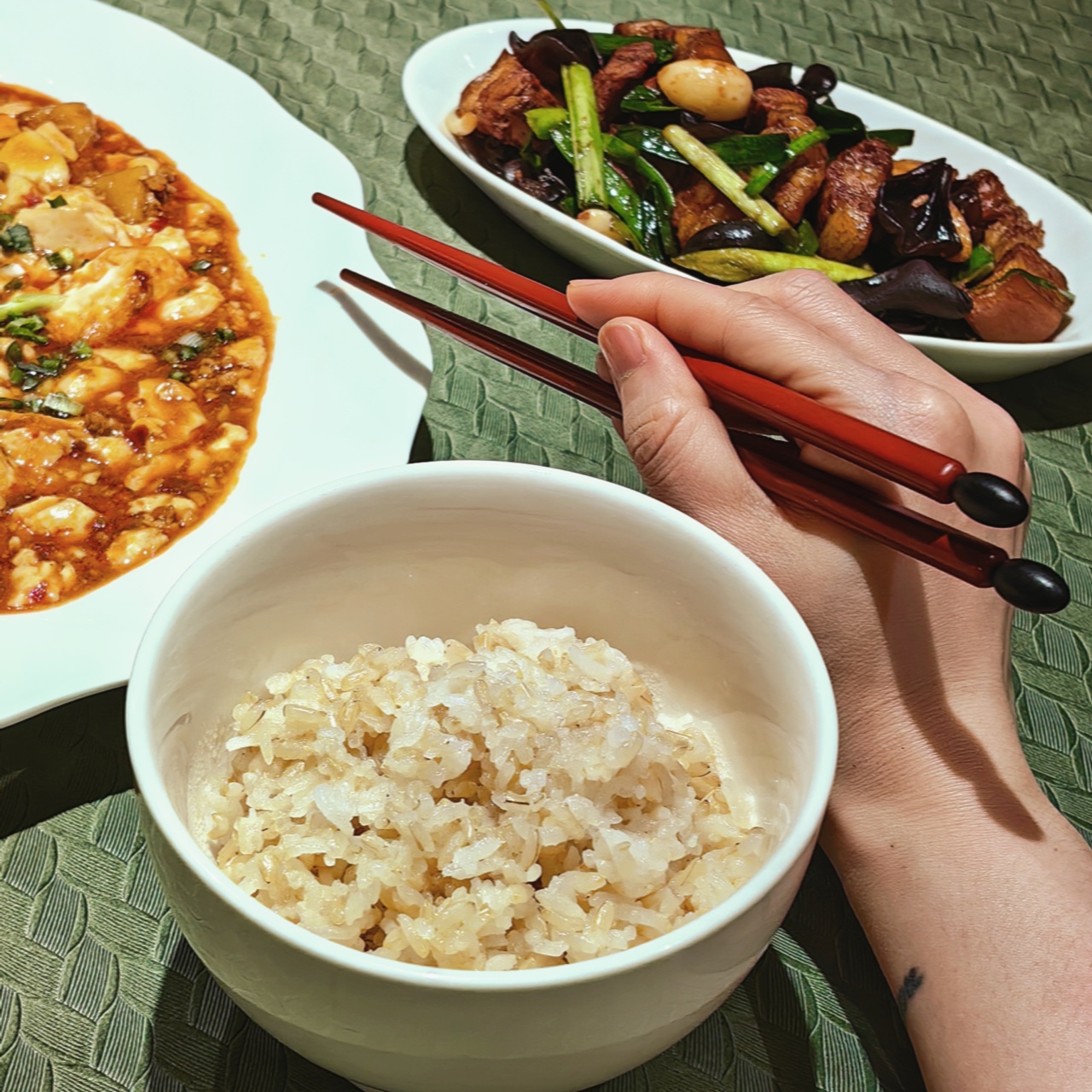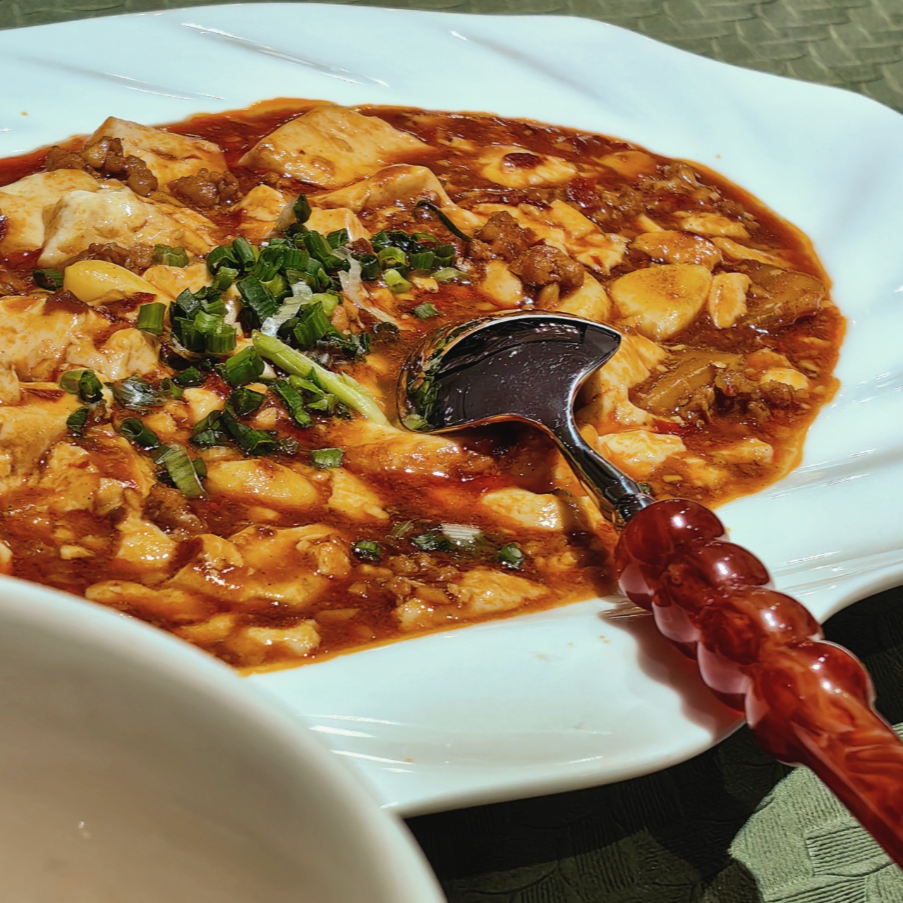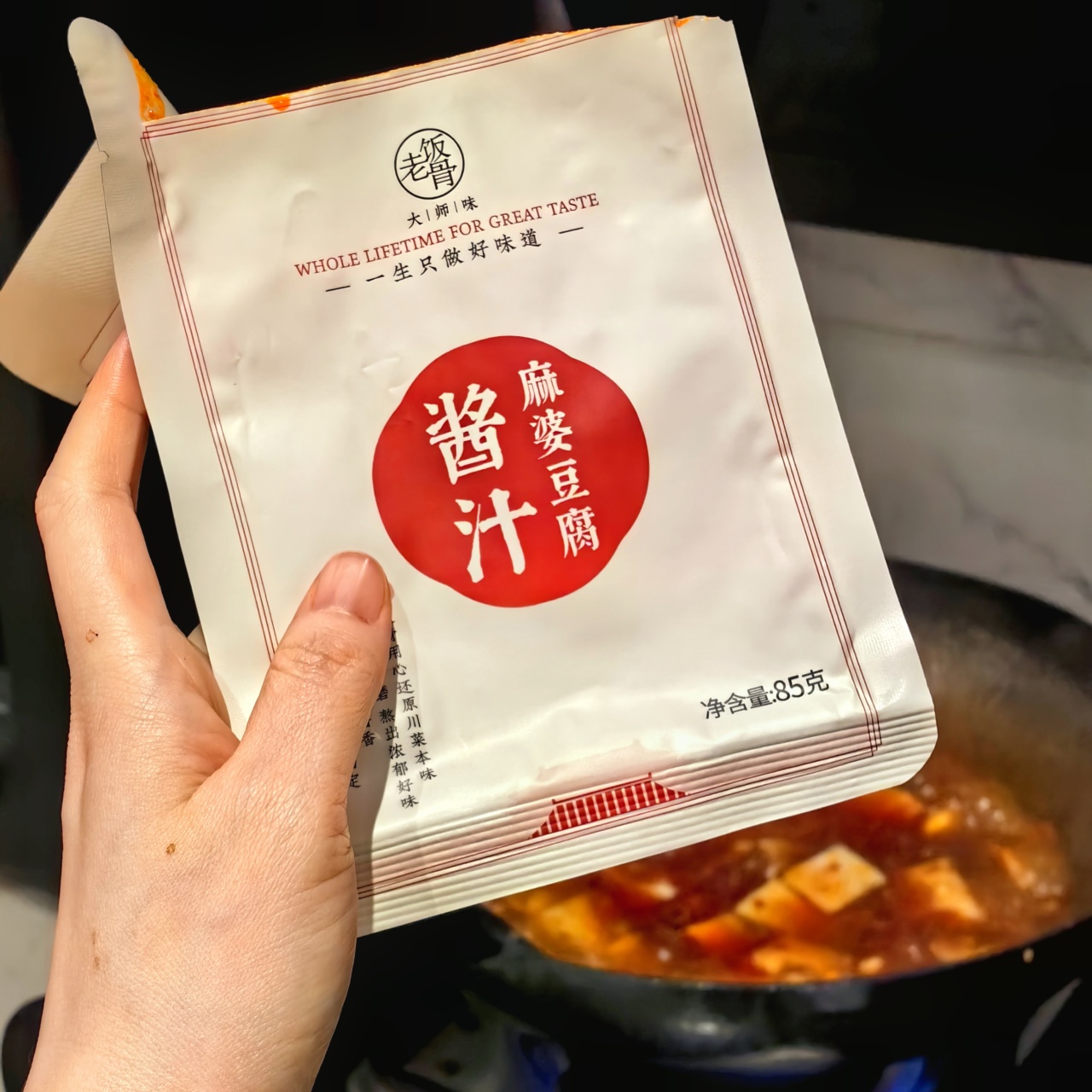 这道麻婆豆腐,因为有了老饭骨麻婆豆腐酱汁的加持,不仅色泽红亮诱人,更在味道上达到了一个新的高度。豆瓣酱的醇厚与香辣,与豆腐的细腻滑嫩完美融合,真的是把麻辣鲜香发挥得淋漓尽致,配上两碗白米饭,这味道,绝!