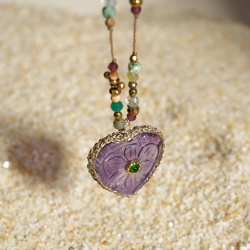 北京仓|ROOM SERVICE-BLOSSOM-紫水晶 心形 吊坠 项链[法国设计师]
