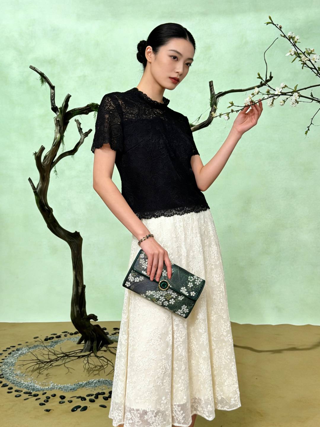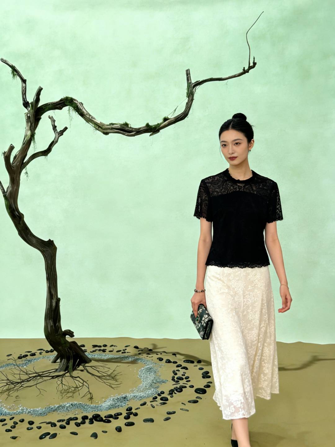 SZ2T01_漆黑色_T 恤_春夏_蕾丝提花修身显瘦_高级女装_BERNIEELEN 伯妮斯茵