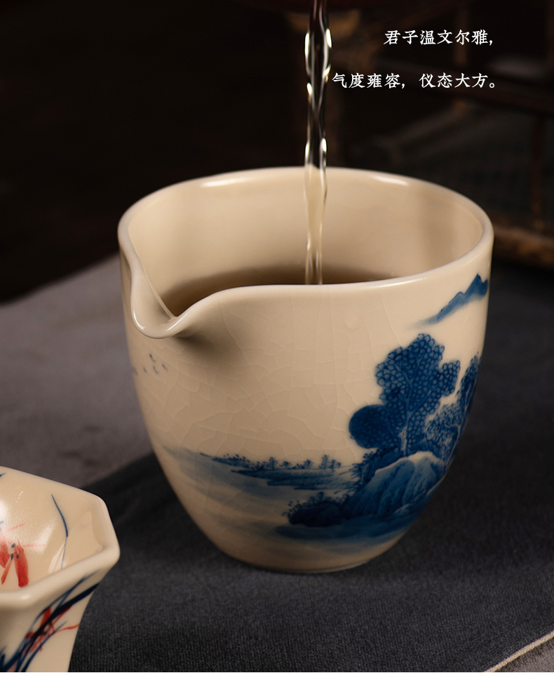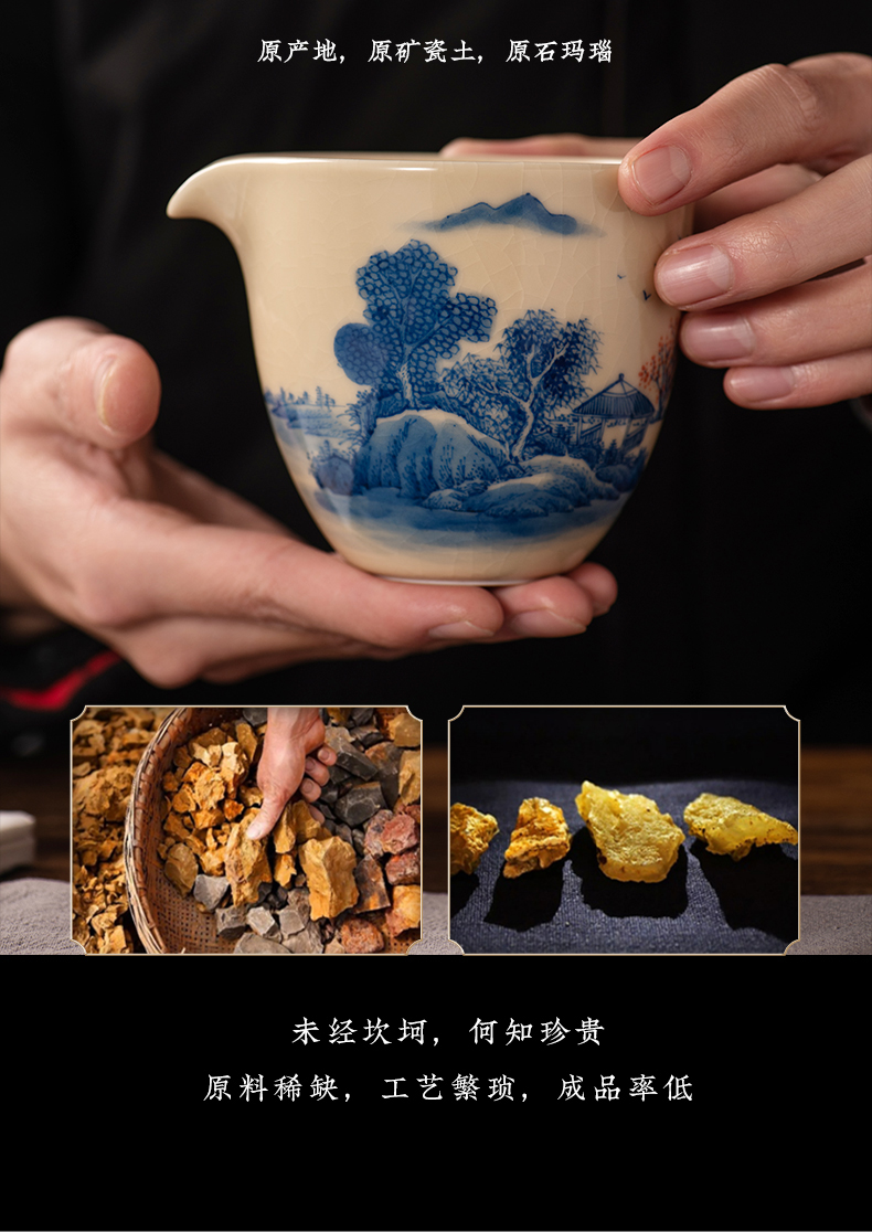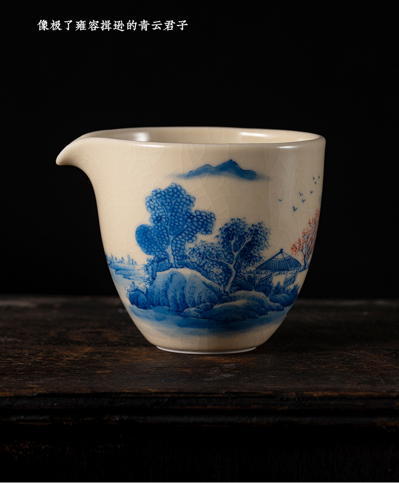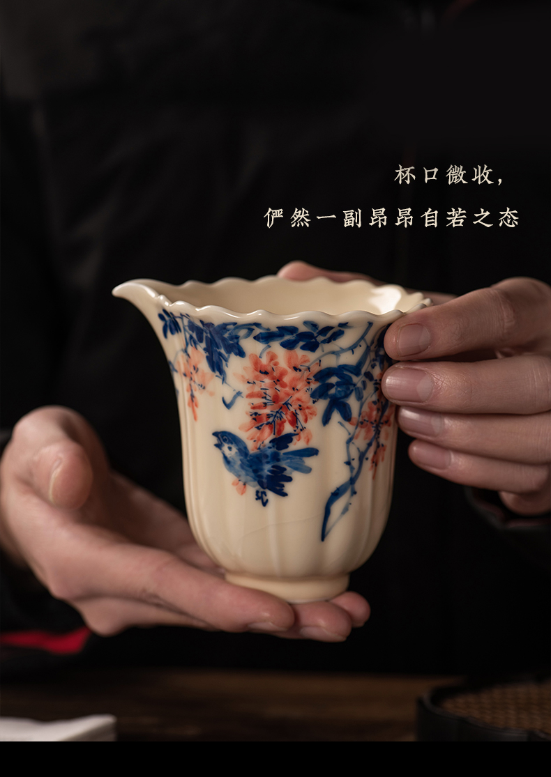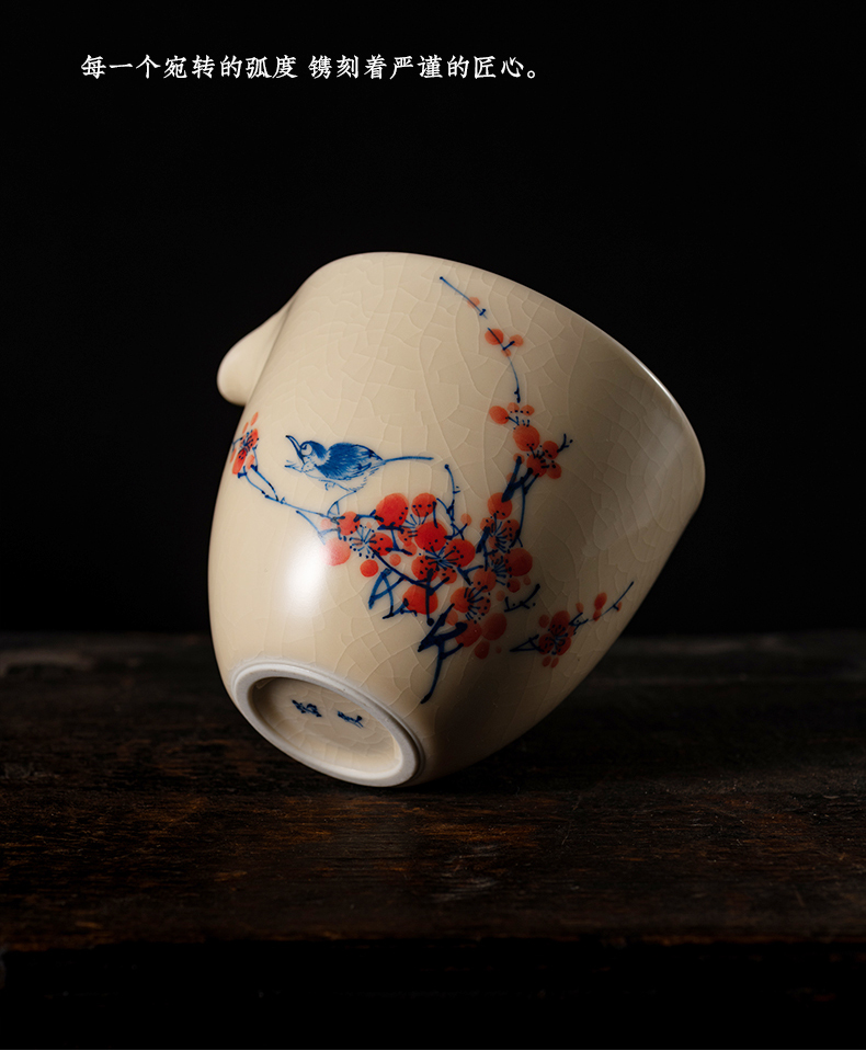 问鼎器度汝窑鹅黄青花雍雅公杯(山水)(缺货)(写意喜上红梅)
