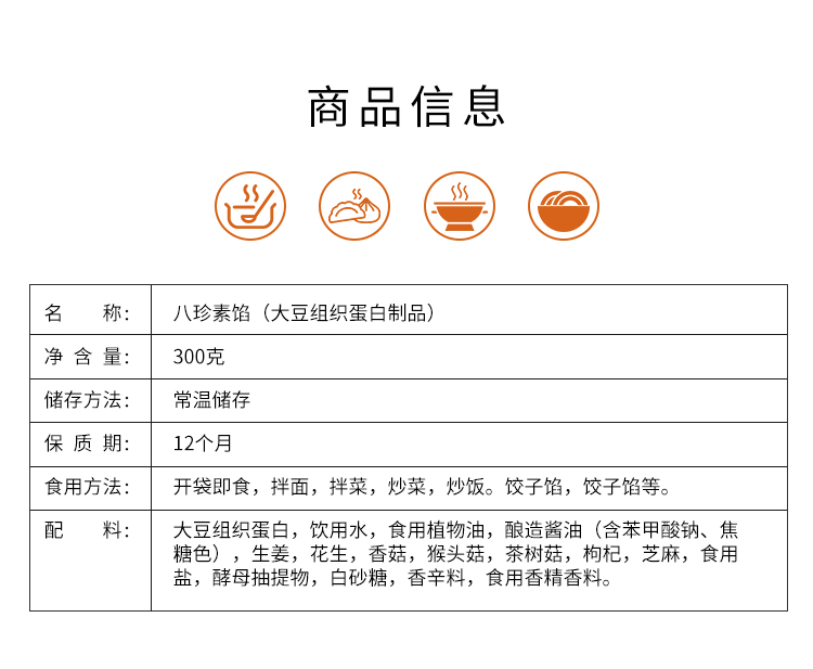八珍素肉馅 纯素斋菜包子饺子馄饨馅 豆制品300克