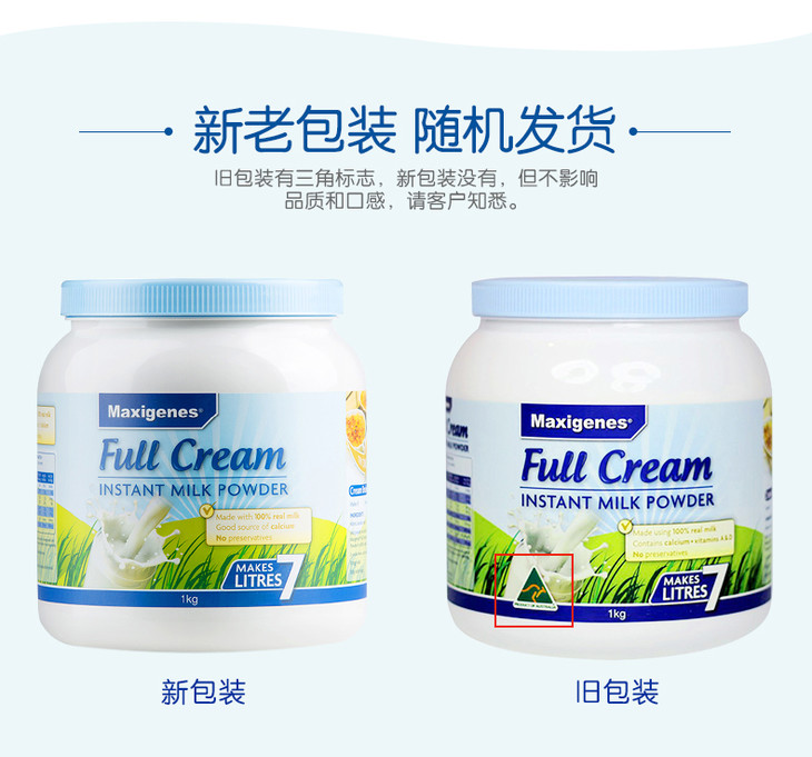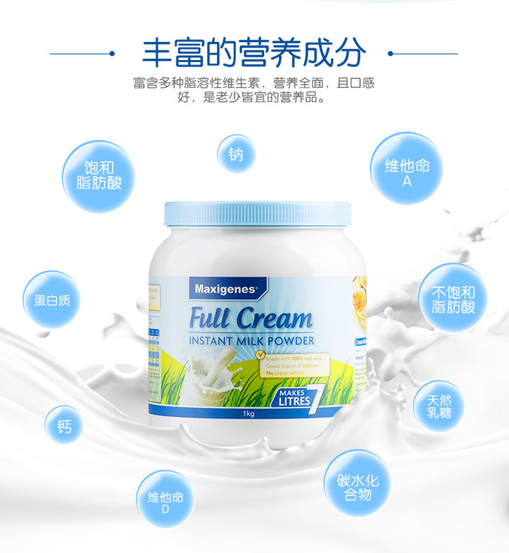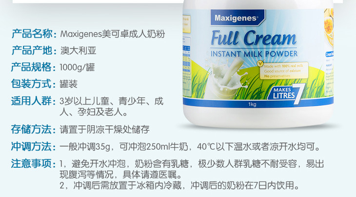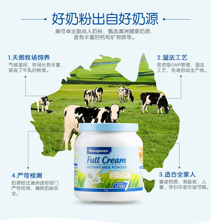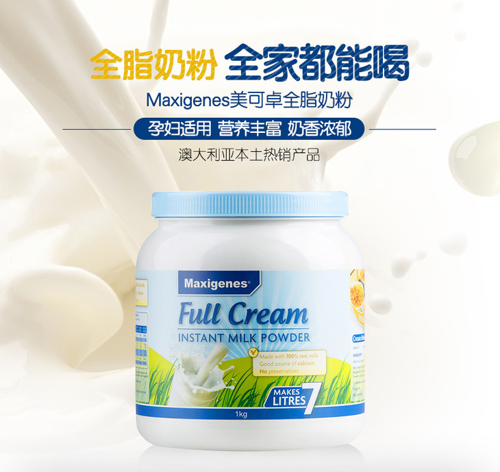 澳洲美可卓蓝胖子高钙成人全脂奶粉1kg