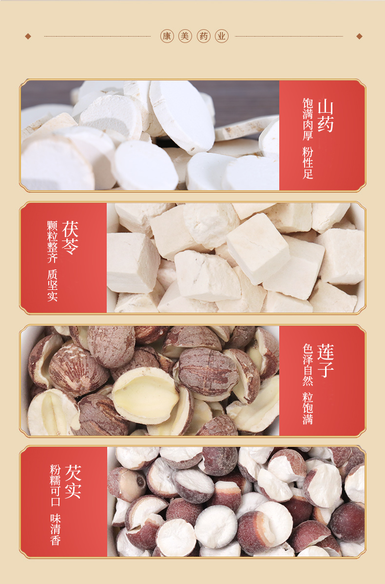 四神汤 60g/剂(茯苓/莲子/山药/芡实) 出自《开卷有益》