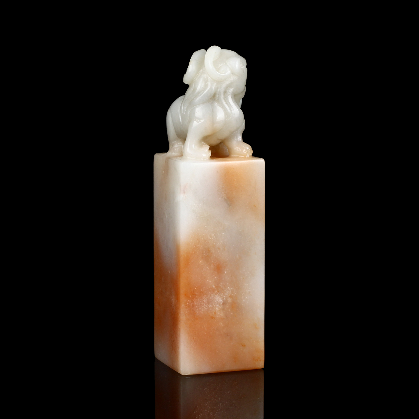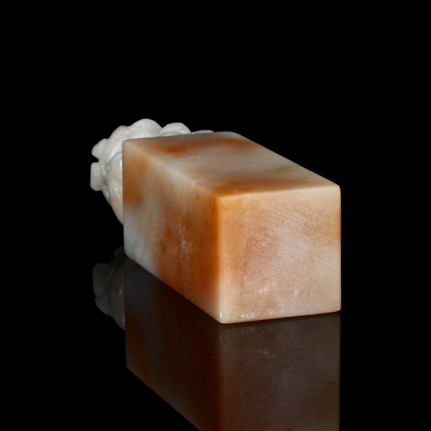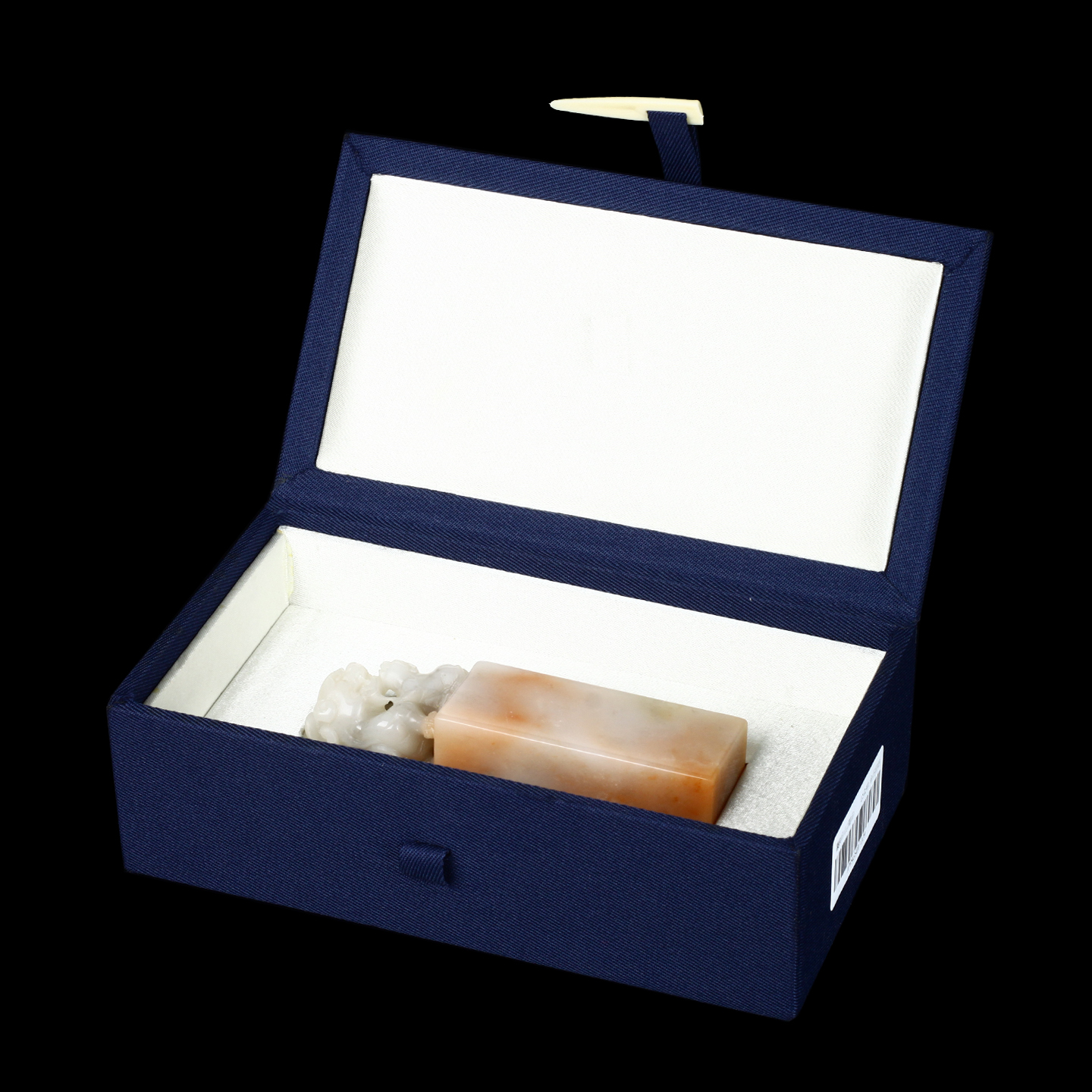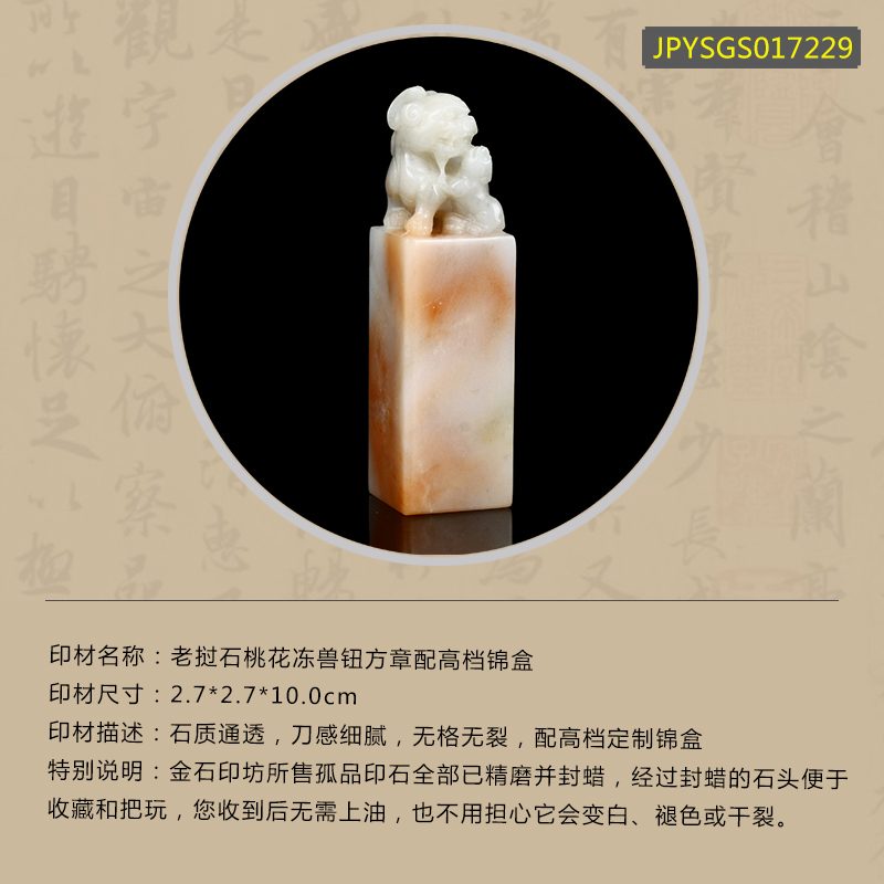 孤品017229老挝石桃花冻兽钮方章配高档锦盒-2.7*2.7*10.0cm