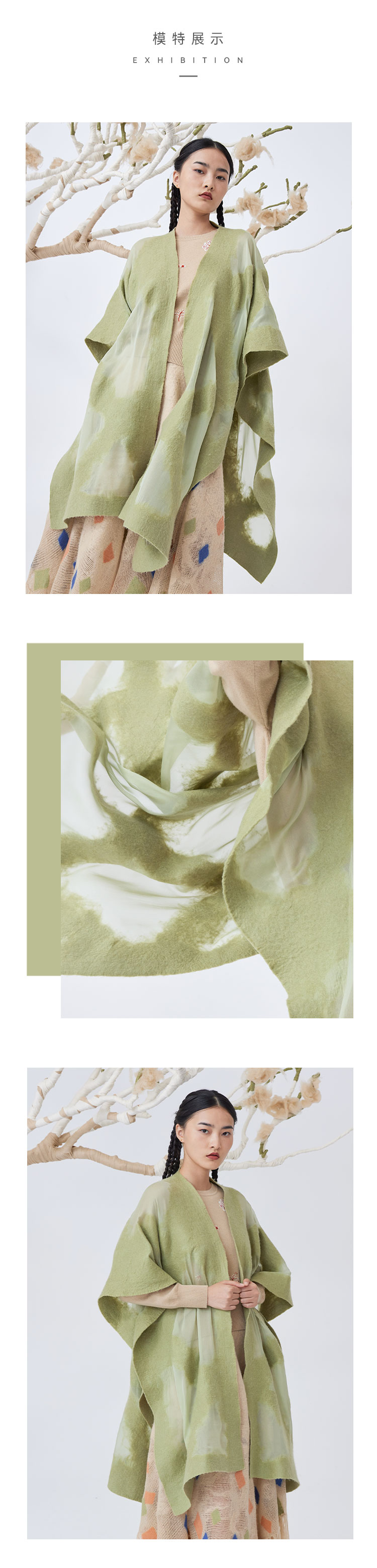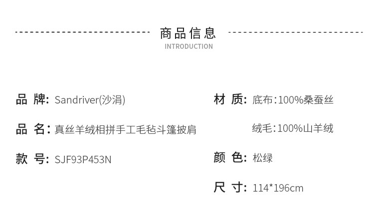 真丝羊绒相拼手工毛毡斗篷披肩 SJF93P453N