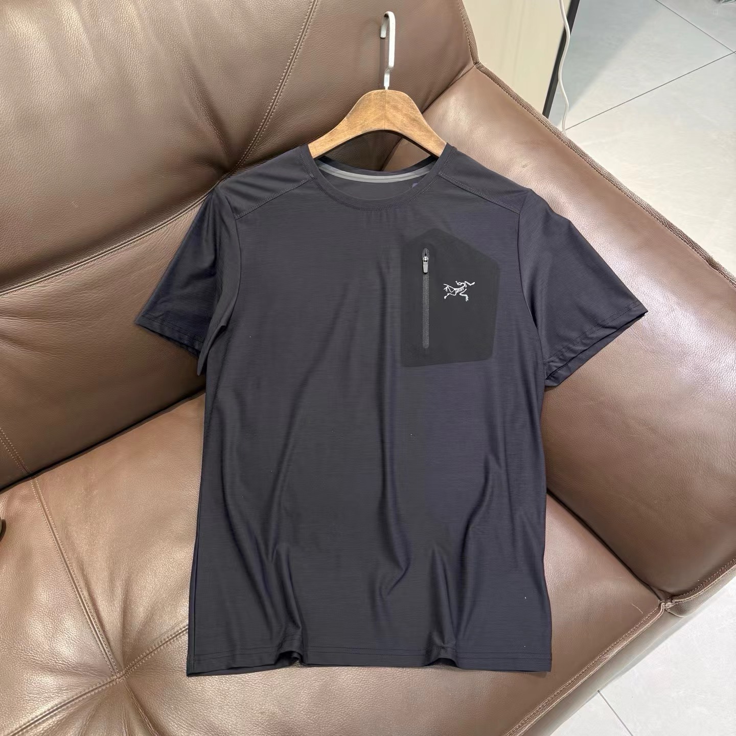 5色新款冰丝压胶短袖T恤 精品面料?85锦纶?15的氨纶?优等冰丝速干,上身贴肤超光滑柔顺,面料克重高非常有质感,运动速干专业功能性面料?,凉感冰肤?四维弹力?透气性绝绝?,工艺,领口无痕压胶 简约 上身舒适度高,胸口拼接无痕压胶隐形口袋拉链? 简约风格。版型显瘦宽松?,弹性非常的大??爱运动跑步户外的,四面弹想怎么拉伸?随性来,日常穿搭更是没话说?,颜色色系多?有特色?纯色系简单百搭?
